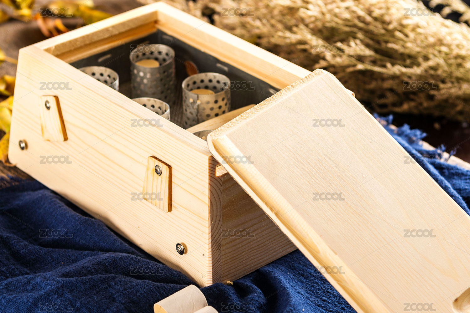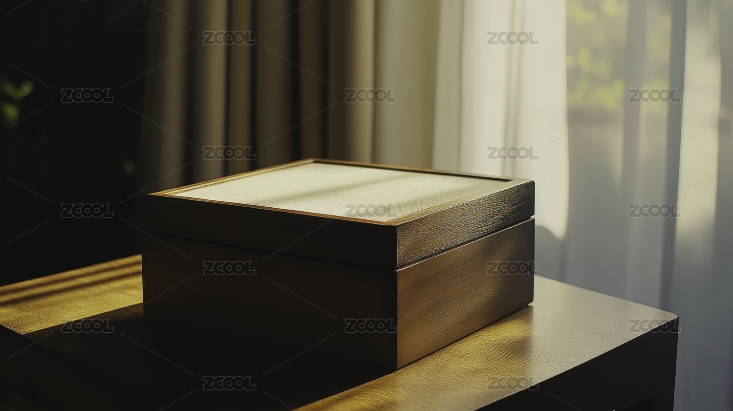 木制盒子在温暖的阳光下