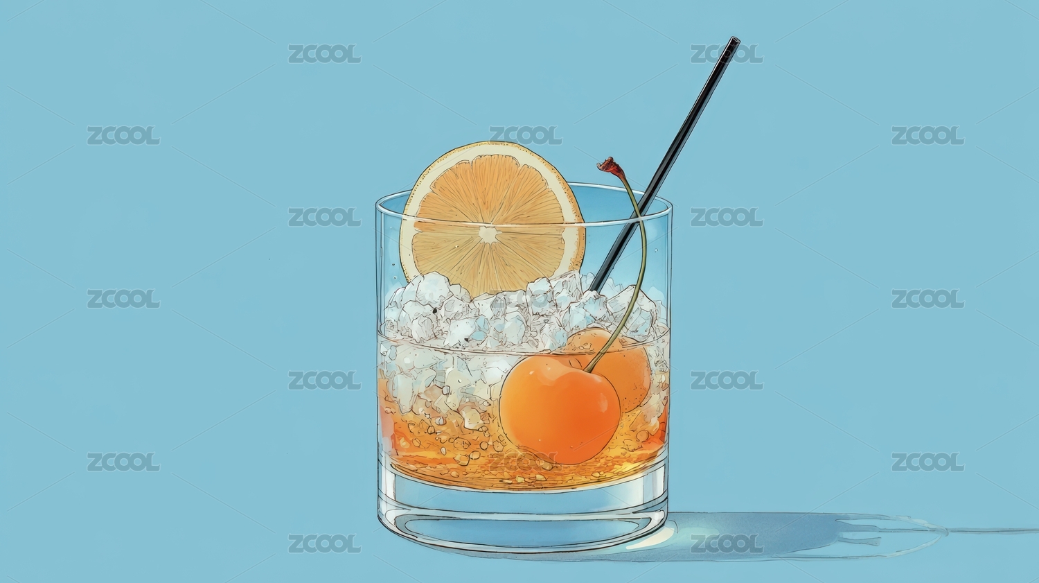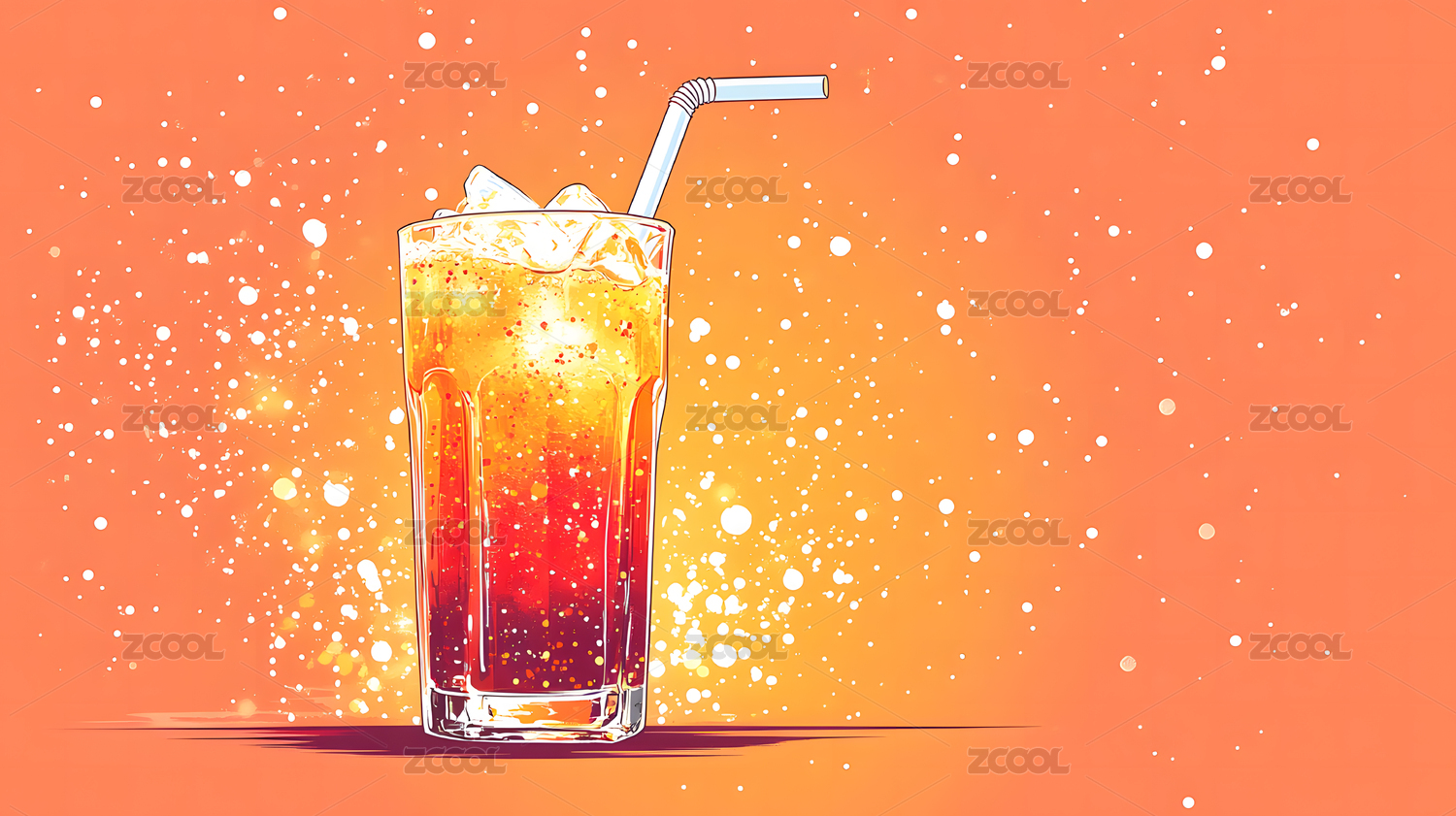 桌面,玻璃杯,冰块,吸管,果汁,3D,插画,冷饮,饮料,冰水