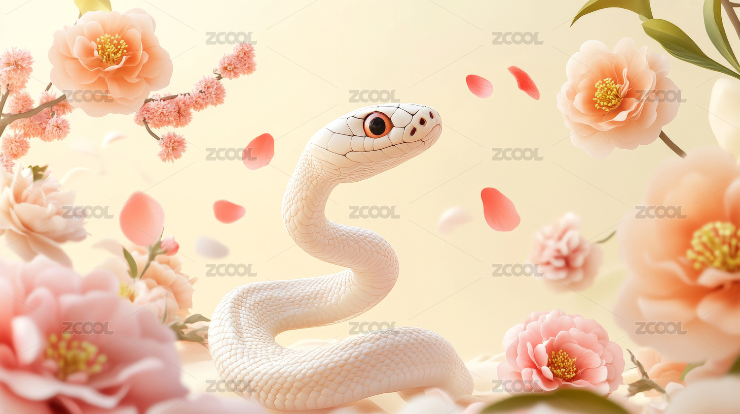 新春节日3D生肖蛇年喜庆壁纸背景图案
