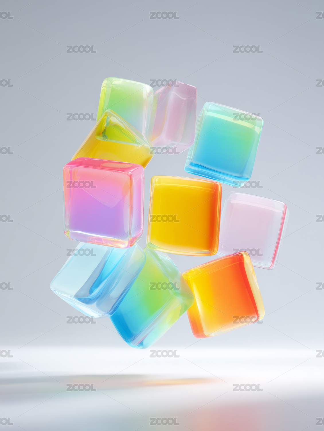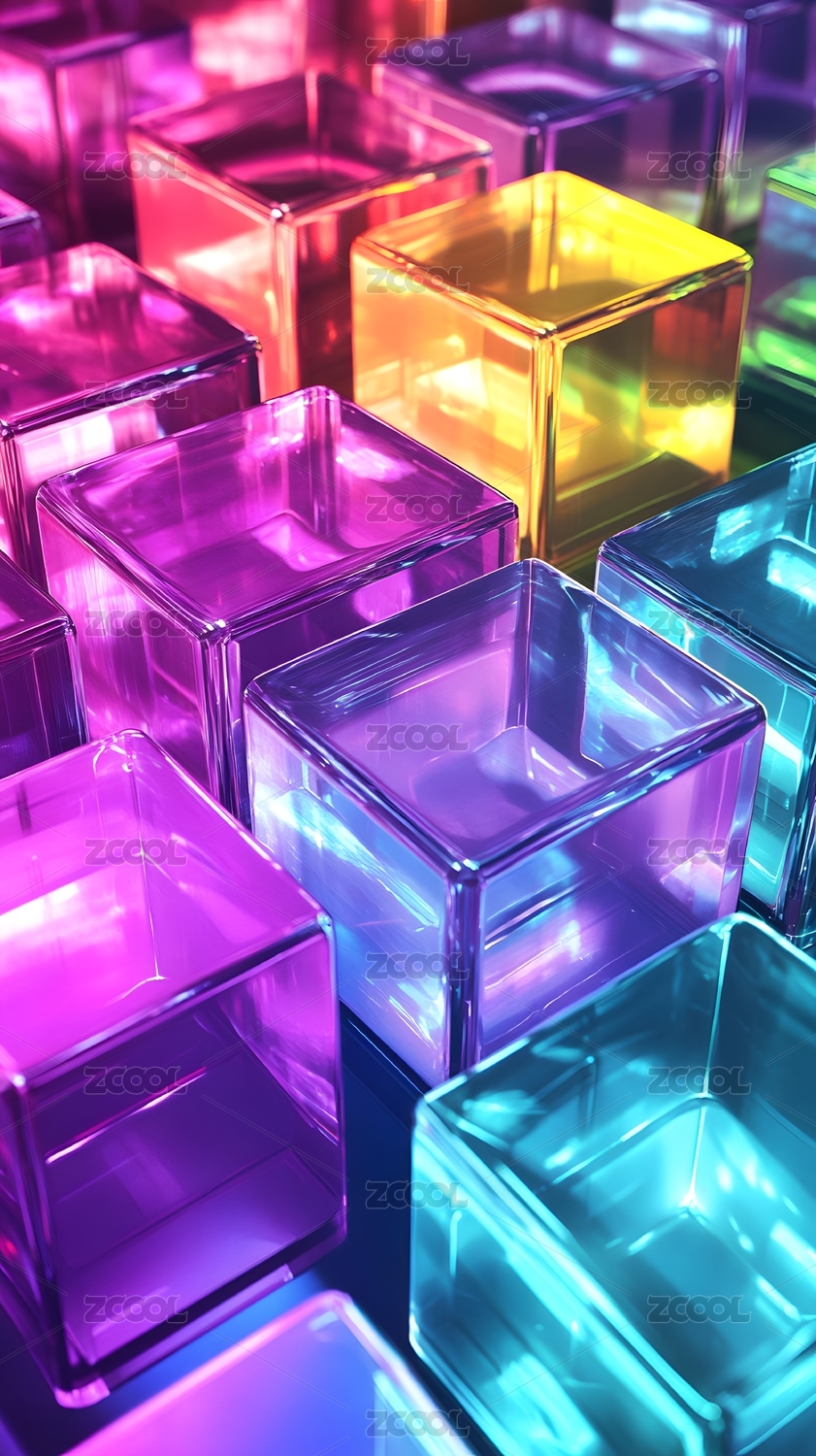 彩色透明方块交错排列,光影梦幻