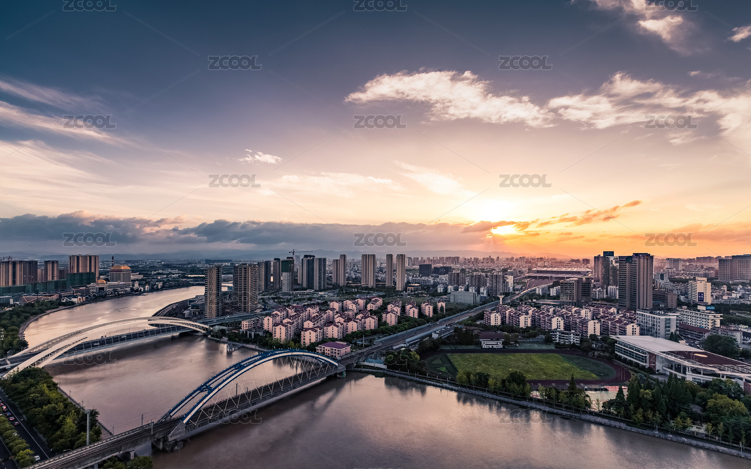 武汉金银湖径河桥晚霞风光