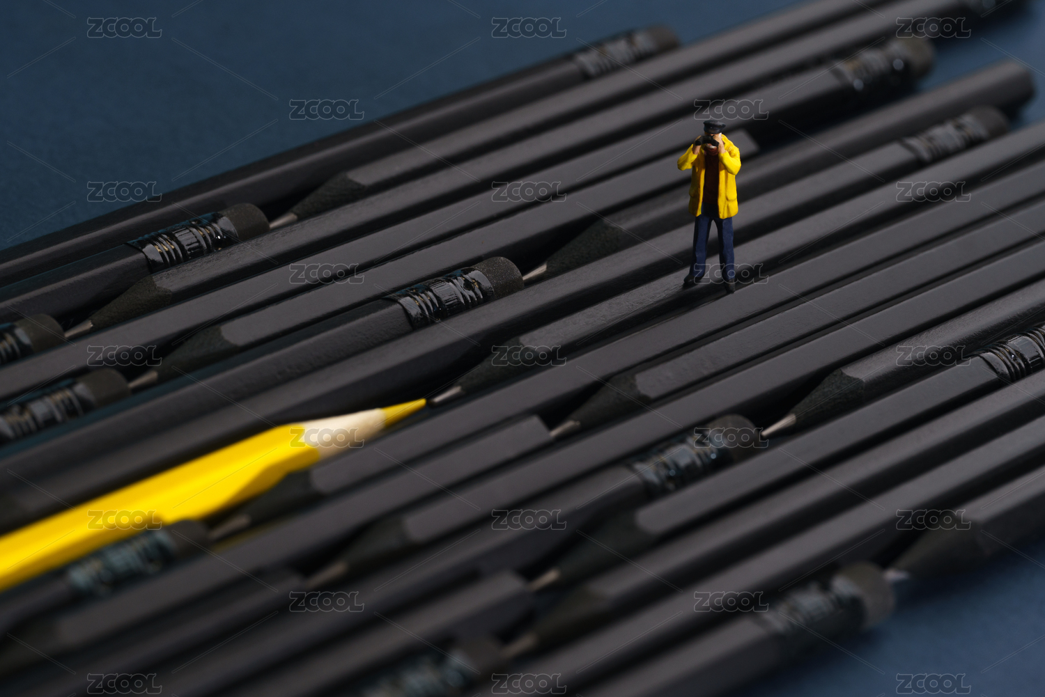 黑色铅笔黑金的寻找黄色铅笔的男士微缩创意