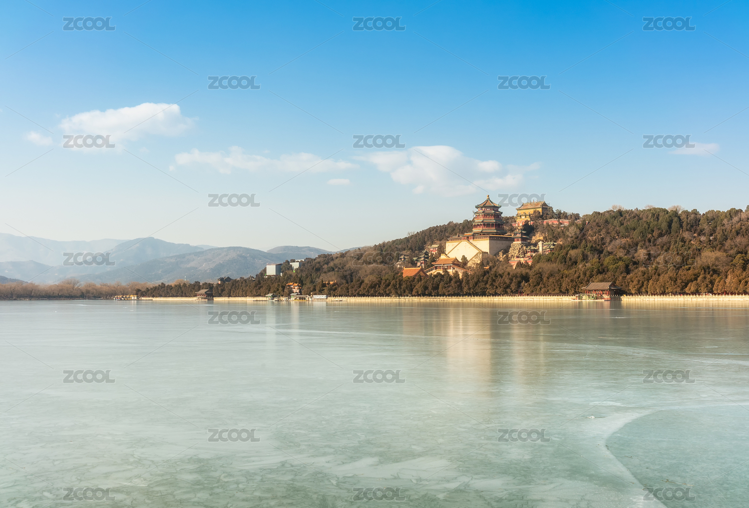 北京颐和园结冰的昆明湖湖面