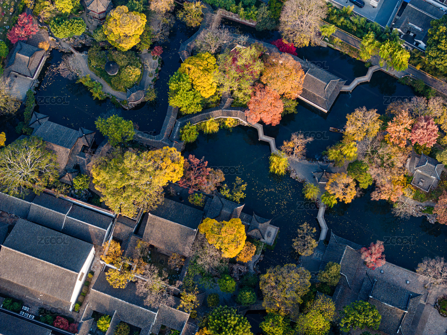 苏州市,东山镇,吴中区,雕花楼,银杏,秋色,俯瞰,江南,园林,建筑