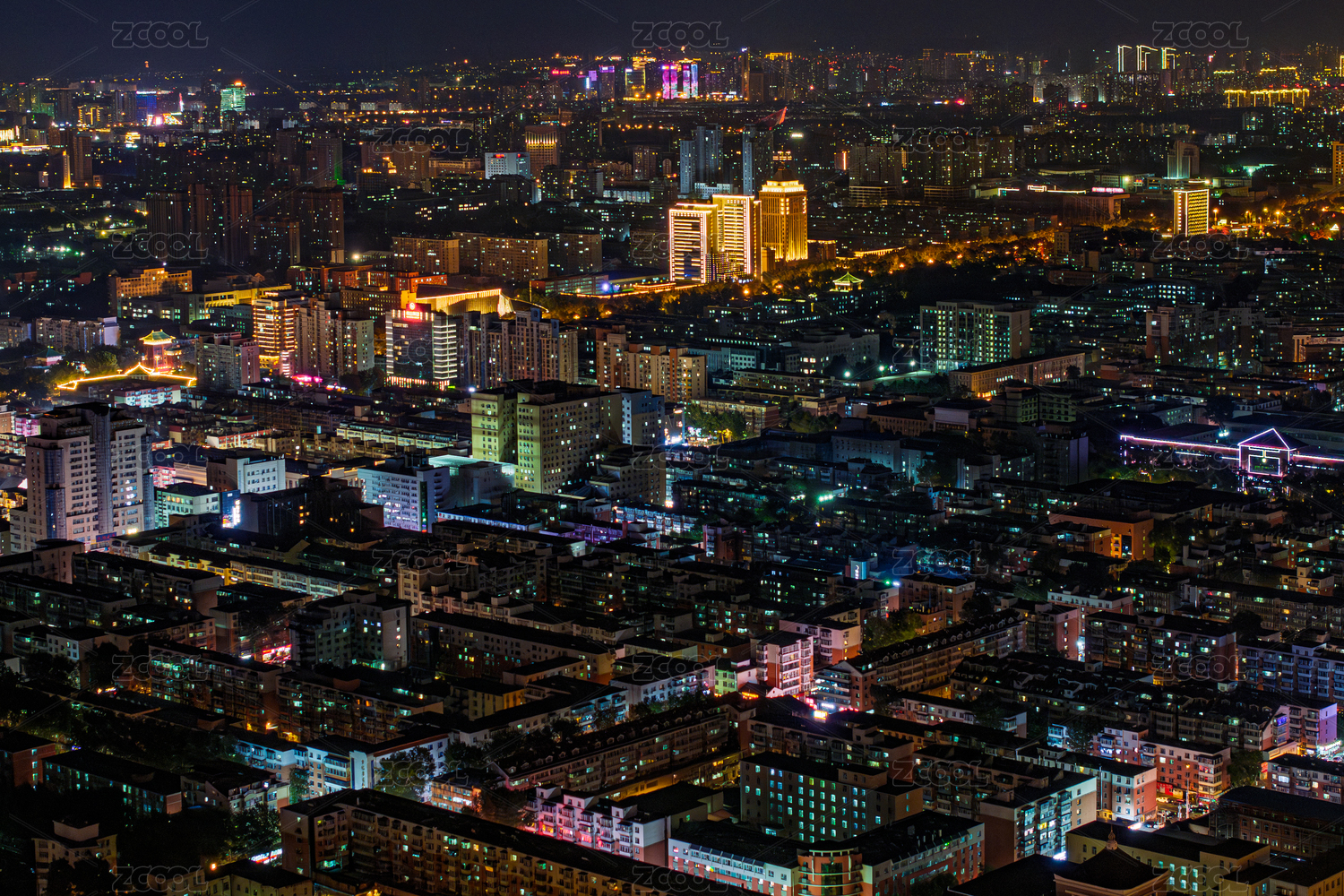 上海美丽的夜晚高角度城市天际线和霓虹灯建筑景观
