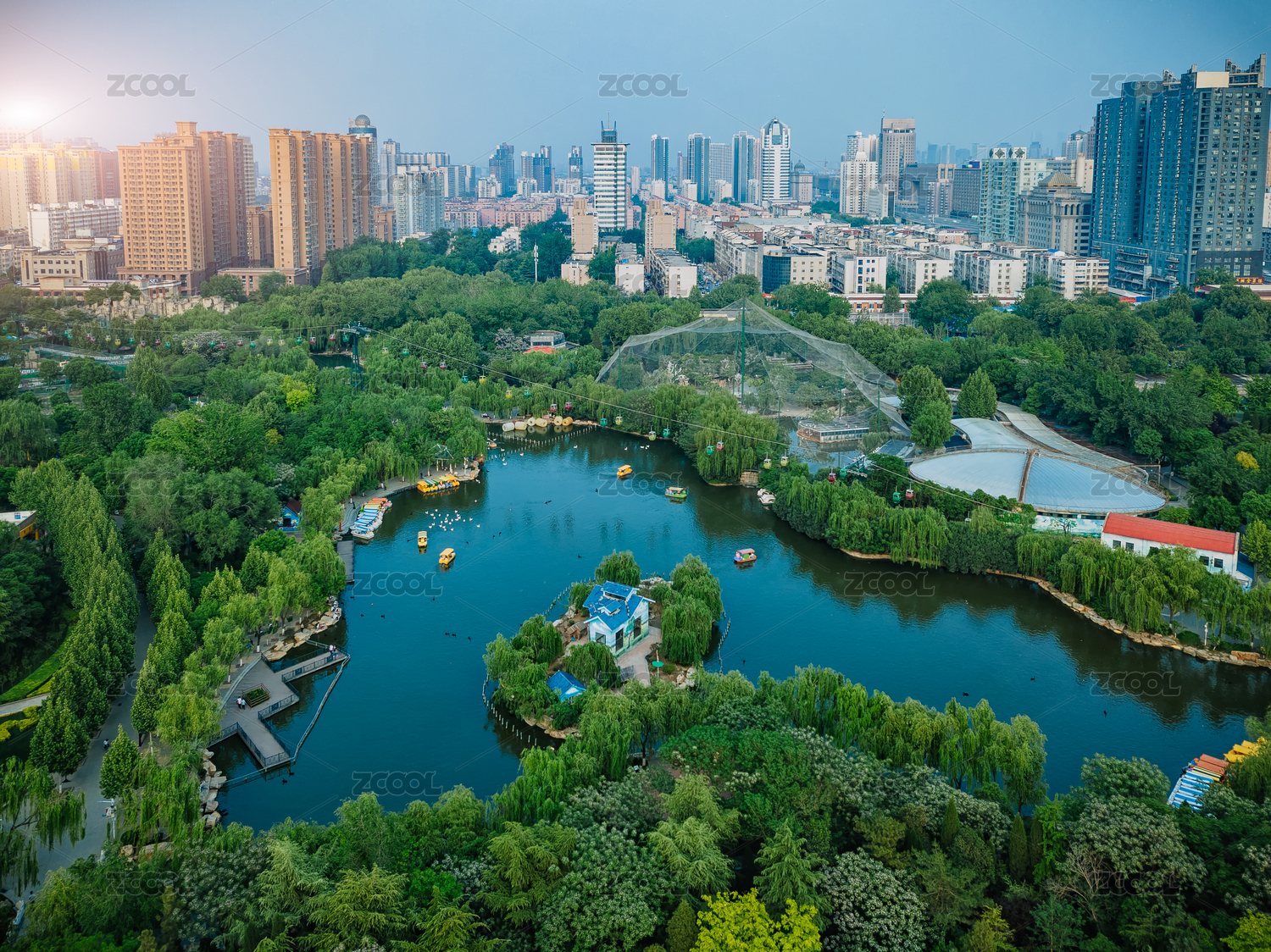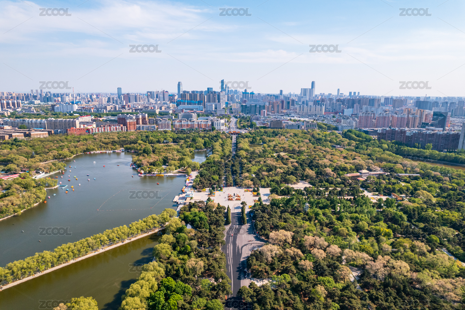 航拍辽宁沈阳北陵公园湖泊水系园林绿化风光
