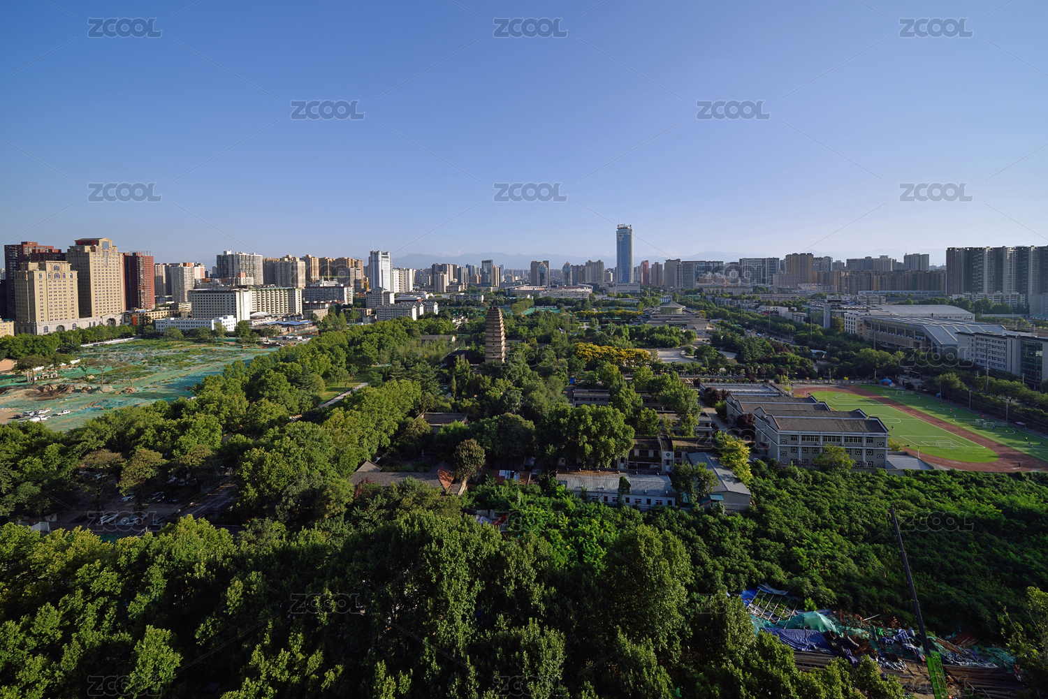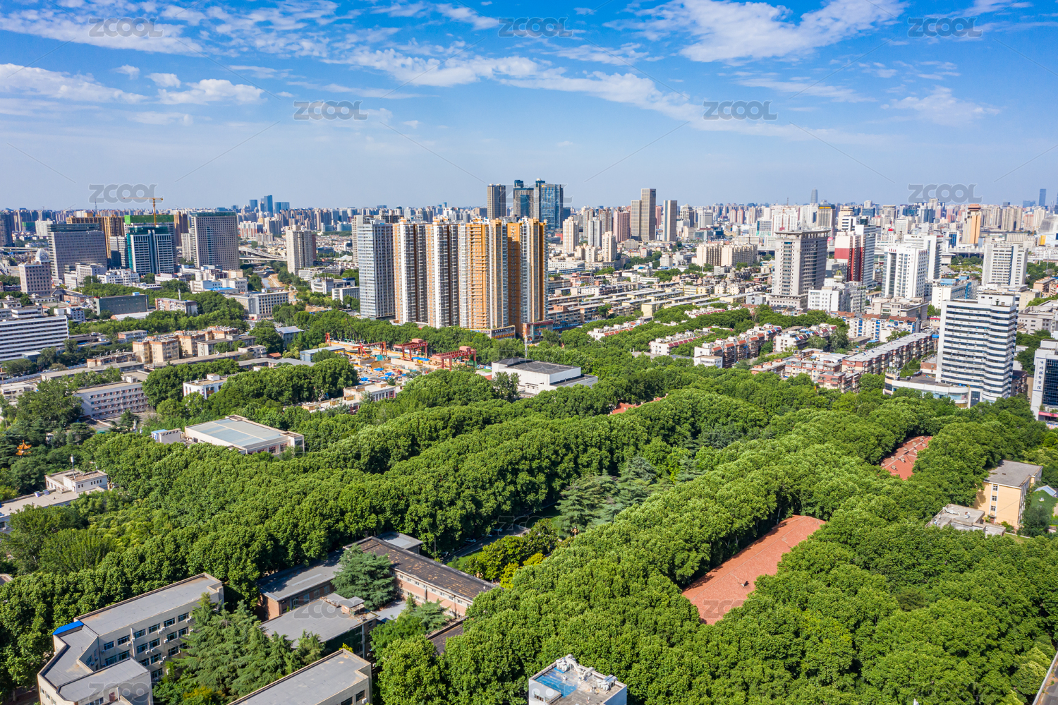 航拍郑州大学老校区苍天大树花园式绿化绿树