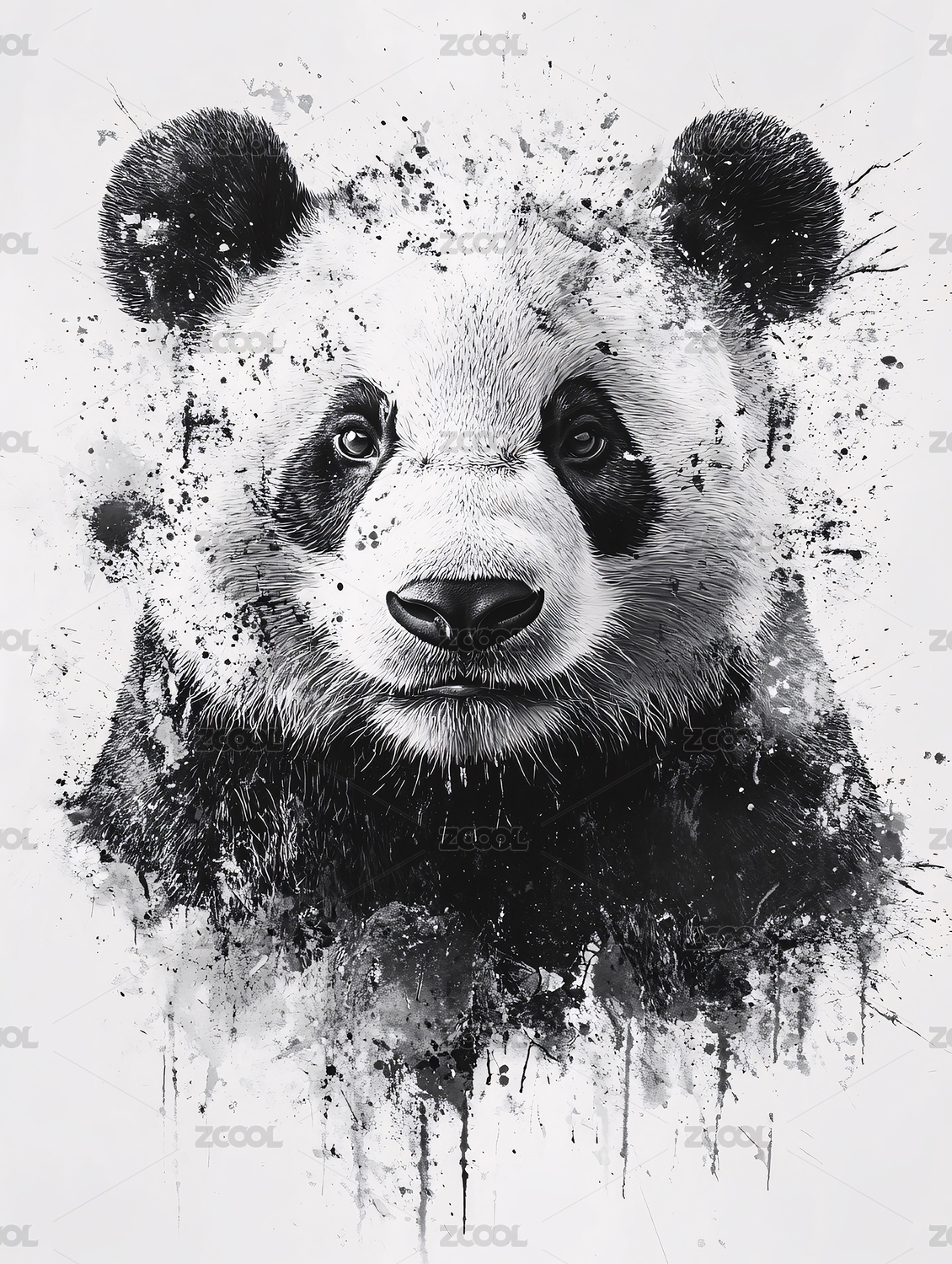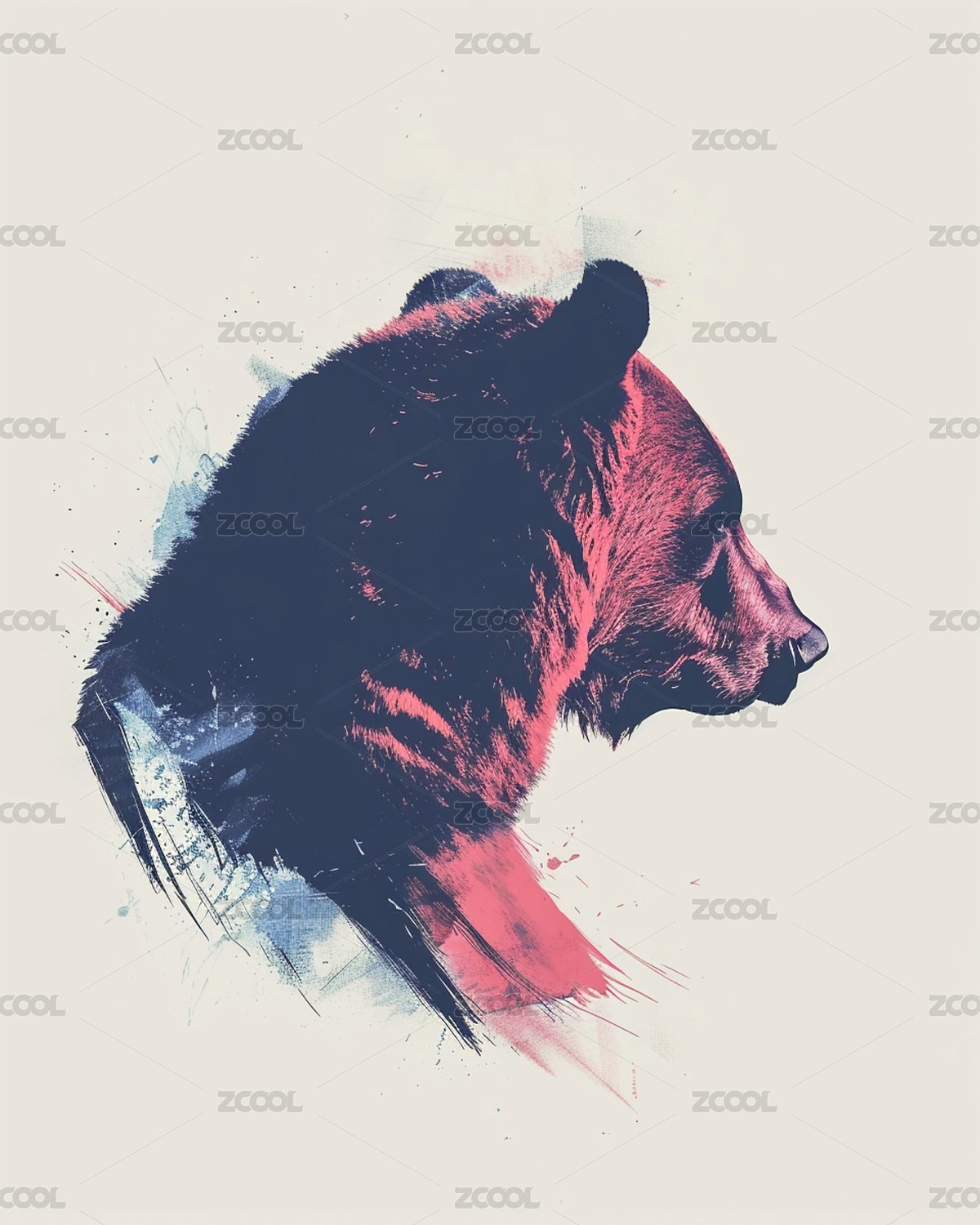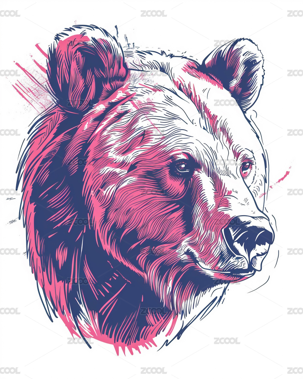 抽象未来感线条赛博朋克黑熊头部T恤插画