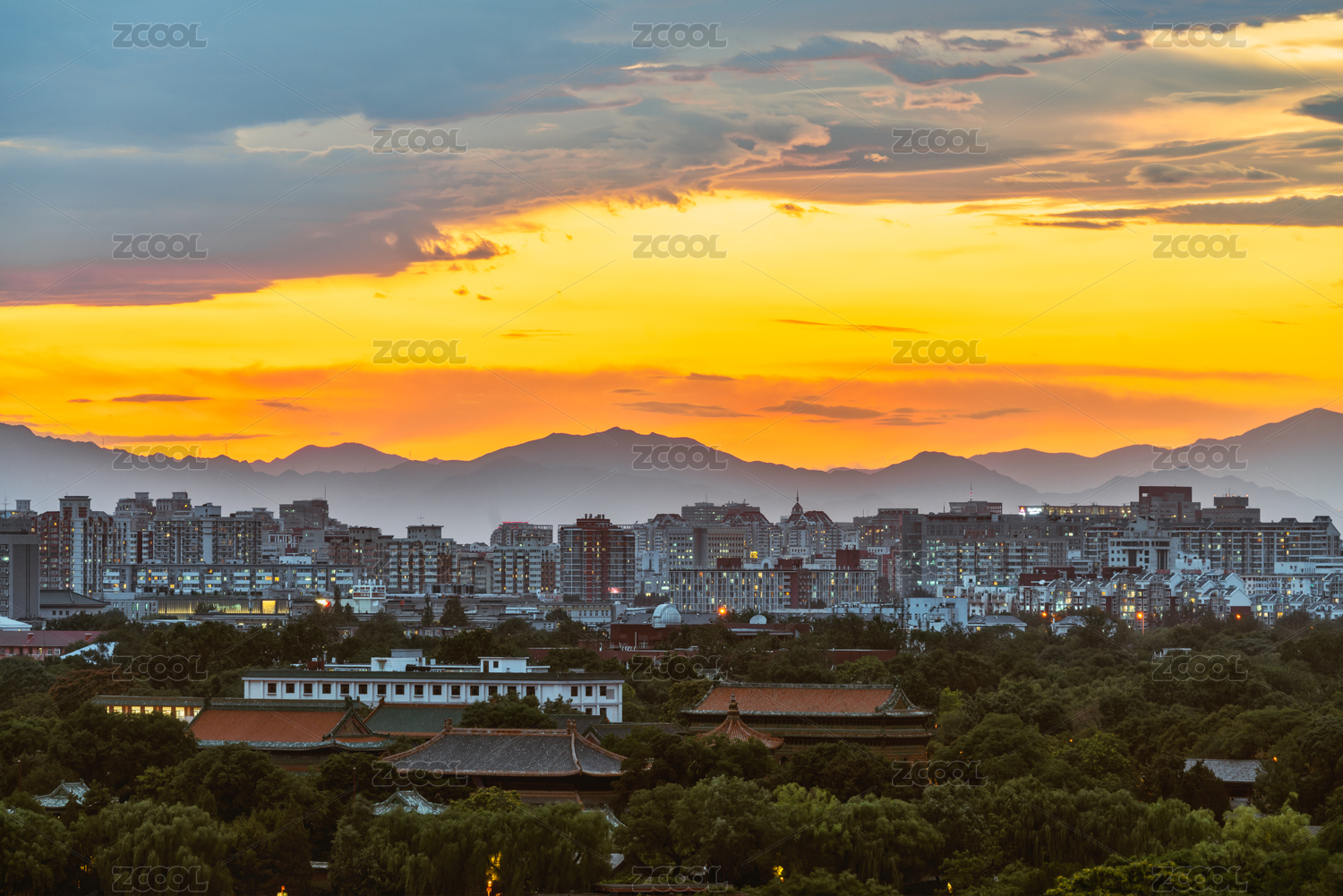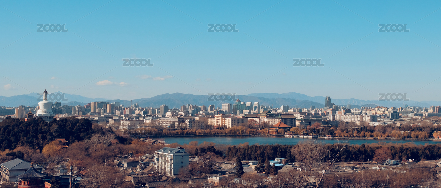 中国,北京,城市,北海,北海公园,天际线,天空,云彩,晴朗,黄昏