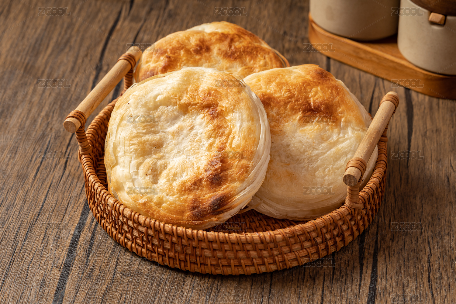 一盘发面饼特写木桌面背景