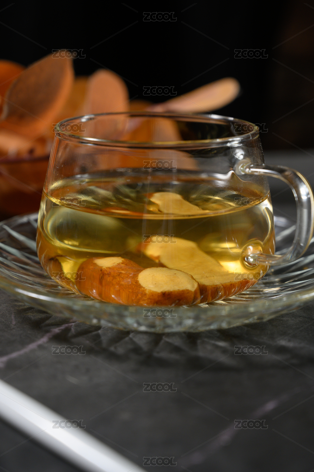 桌面上的盘子里的甘甜可口的银杏叶泡水