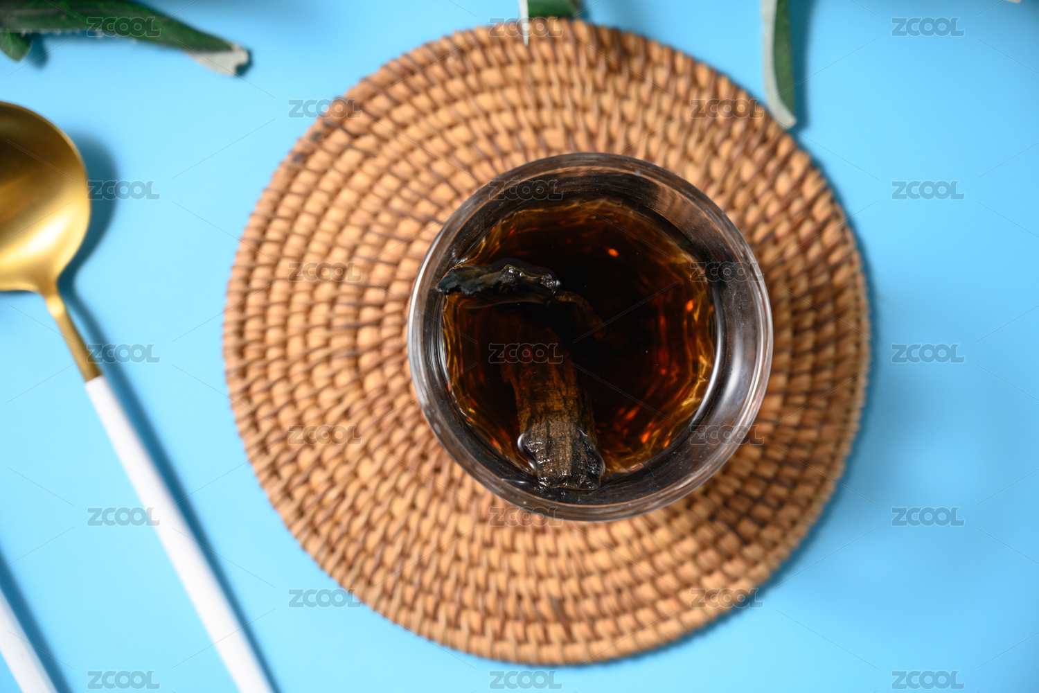 桌面上的杯子里的健康养生的半枝莲凉菜