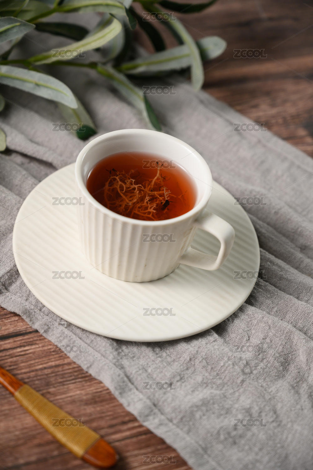 桌面上的杯子里的甘甜可口的三七茶