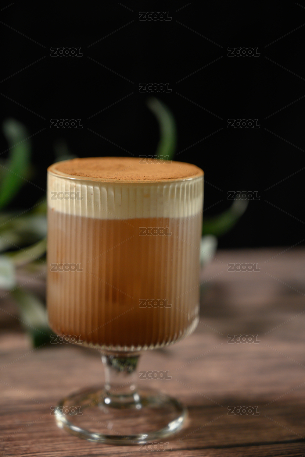 桌面上的杯子里的香甜可口的奶盖巧克力奶茶