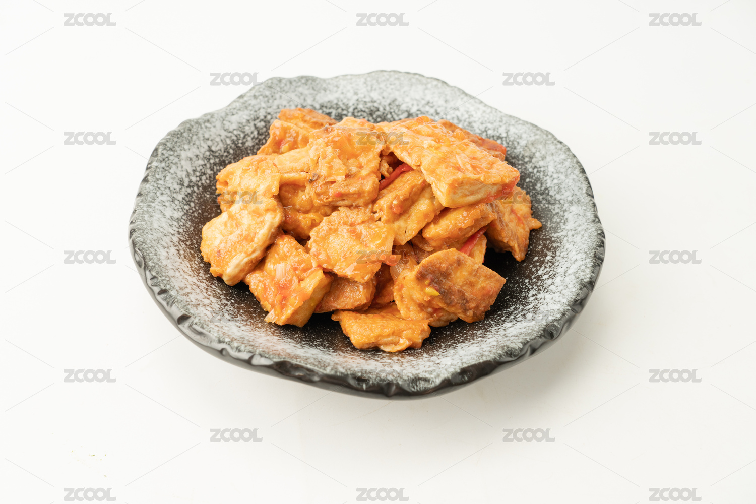 桌面上的盘子里的美味可口的豆腐泡