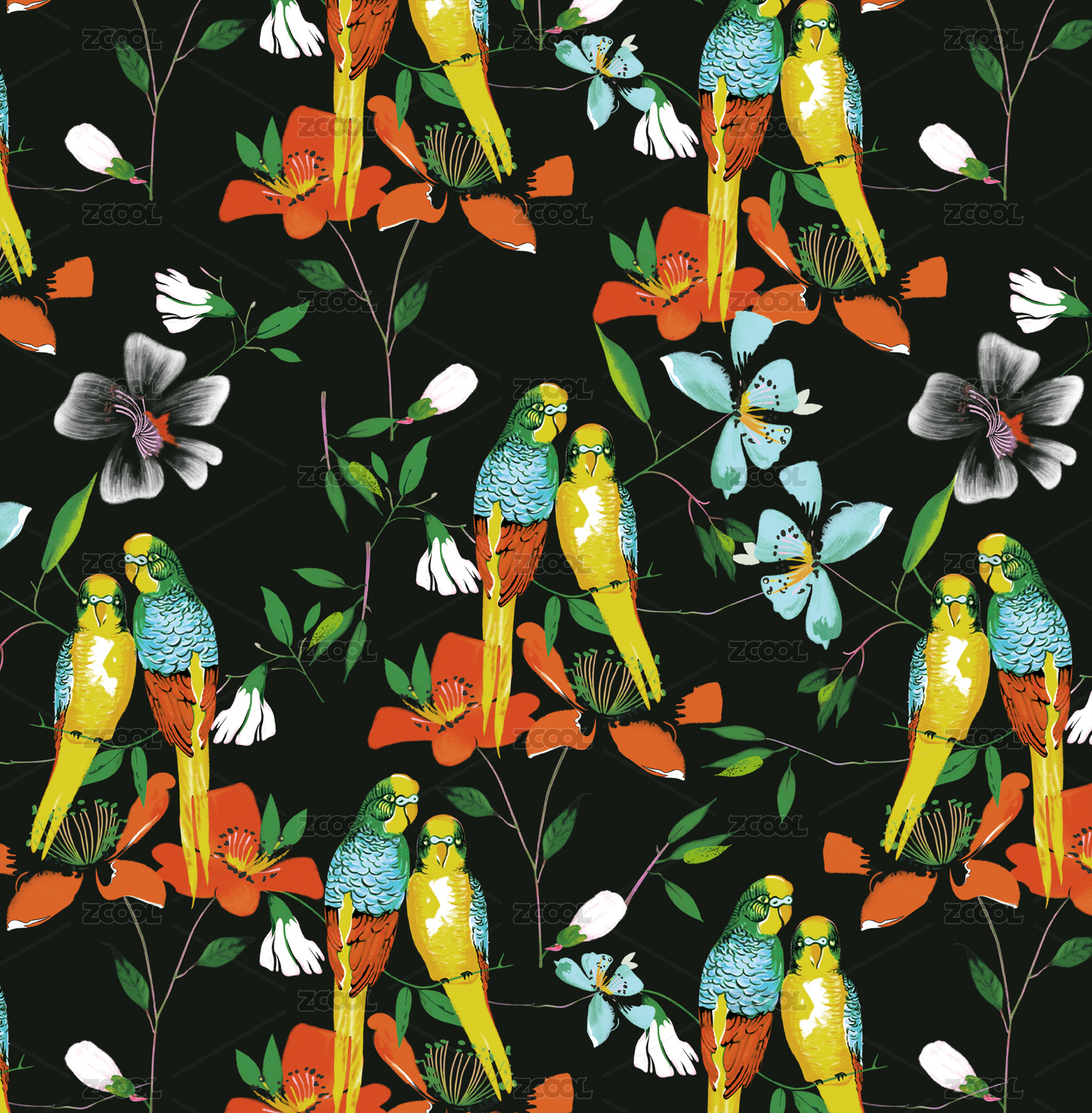 天堂鸟四方连续图案