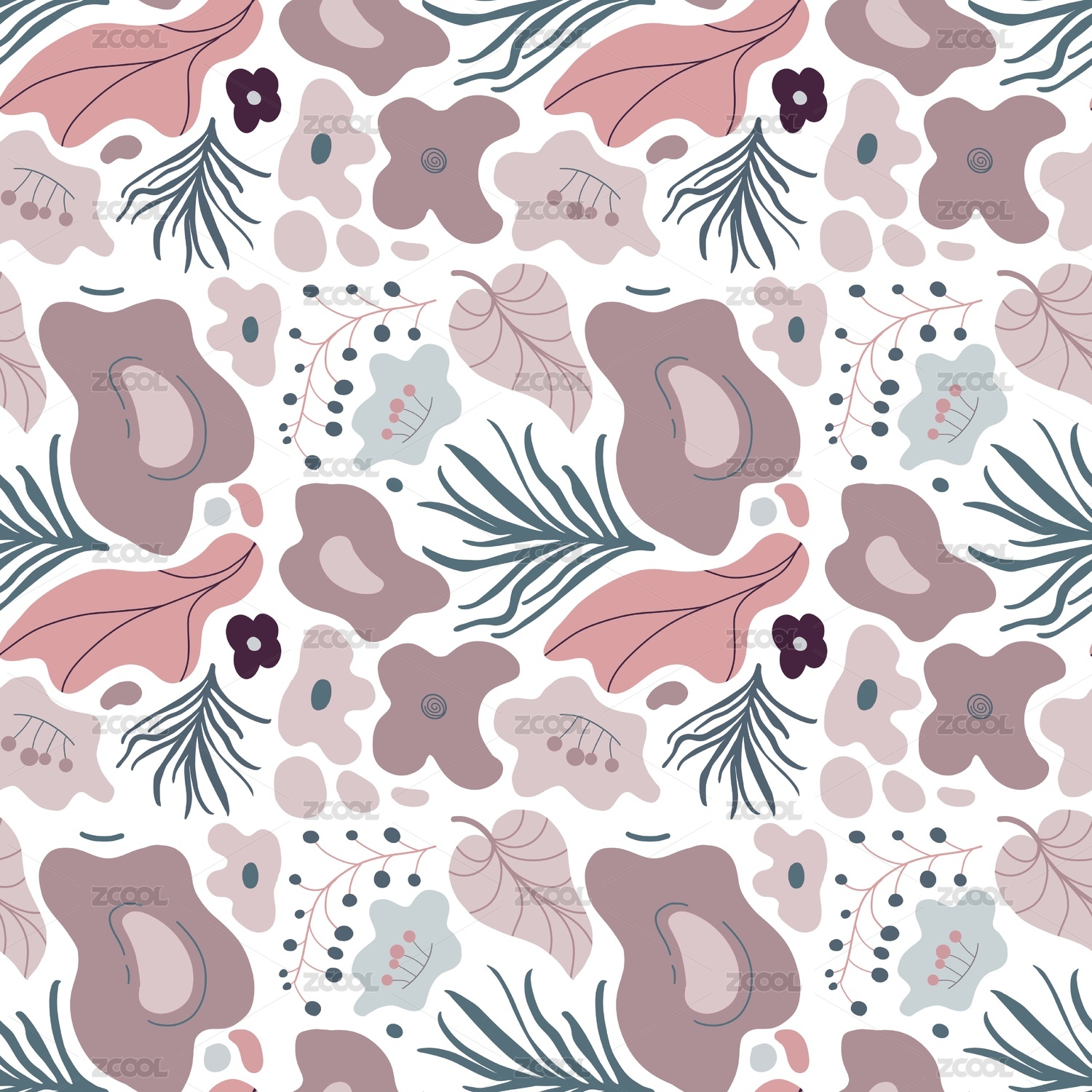 抽象植物花卉无缝连续图案背景
