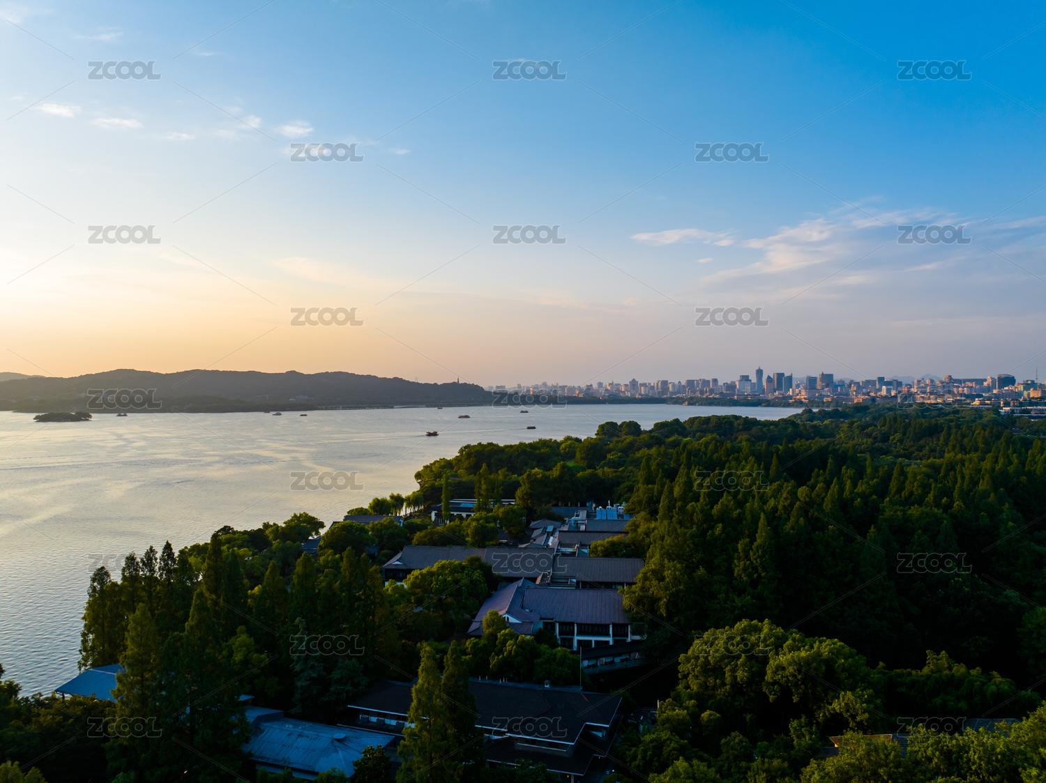 中国浙江省宁波市东钱湖小普陀景区航拍图