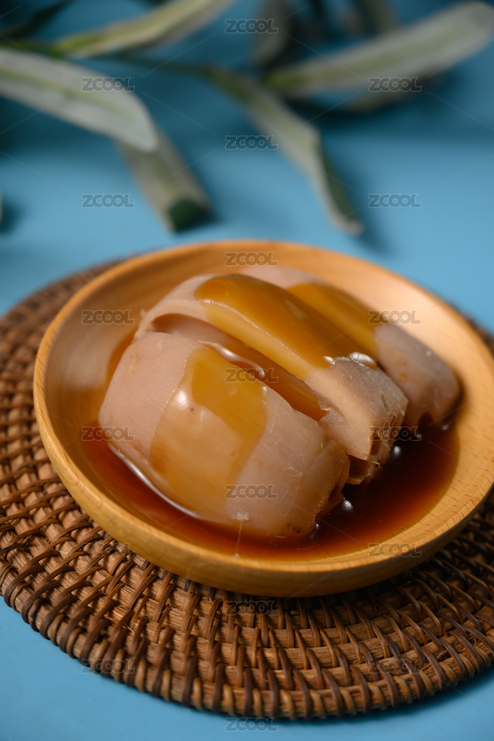 桌面上的盘子里的美味可口的焖莲藕