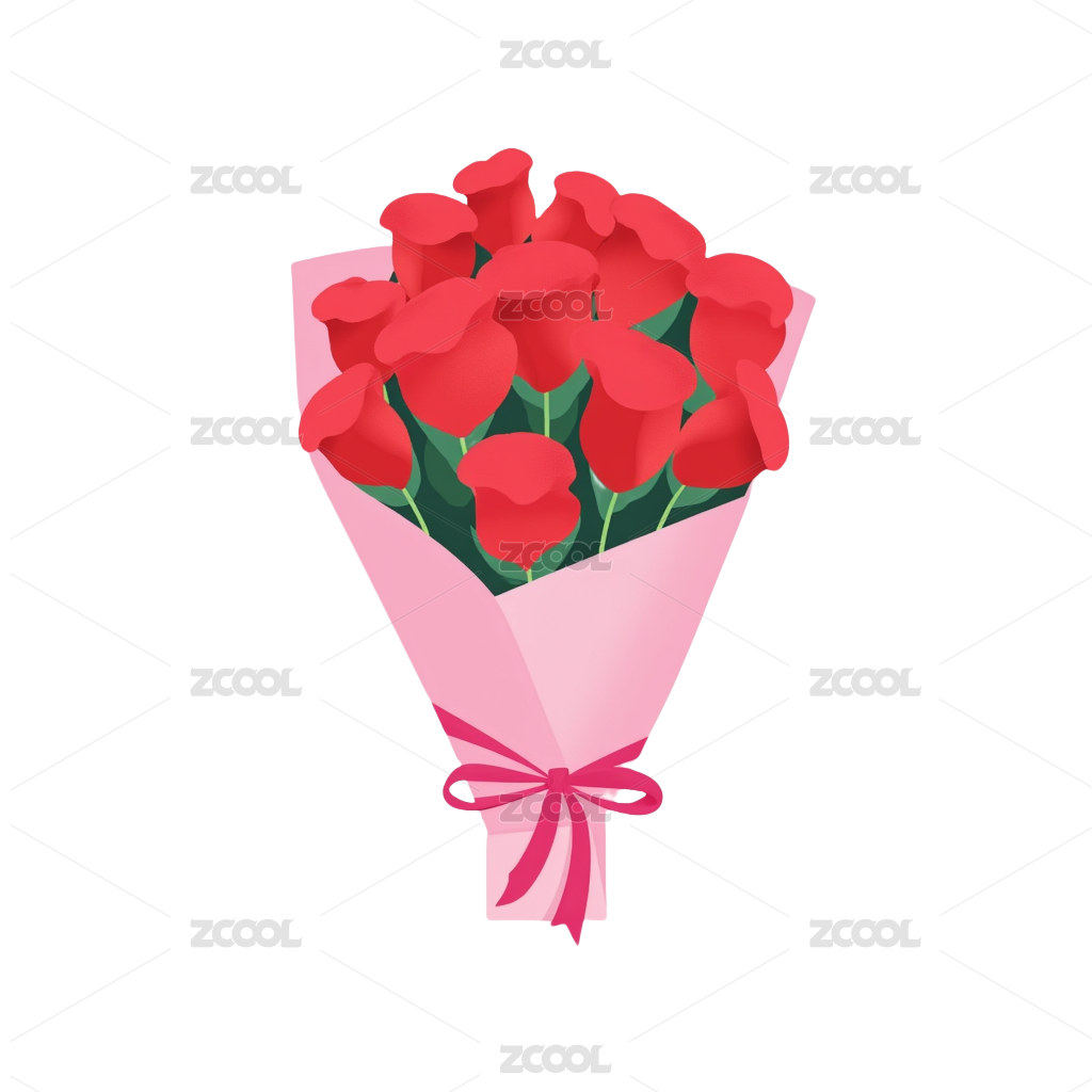 花束,花卉,白兔,兔,兔子,可爱,卡通,插画,萌,玫瑰