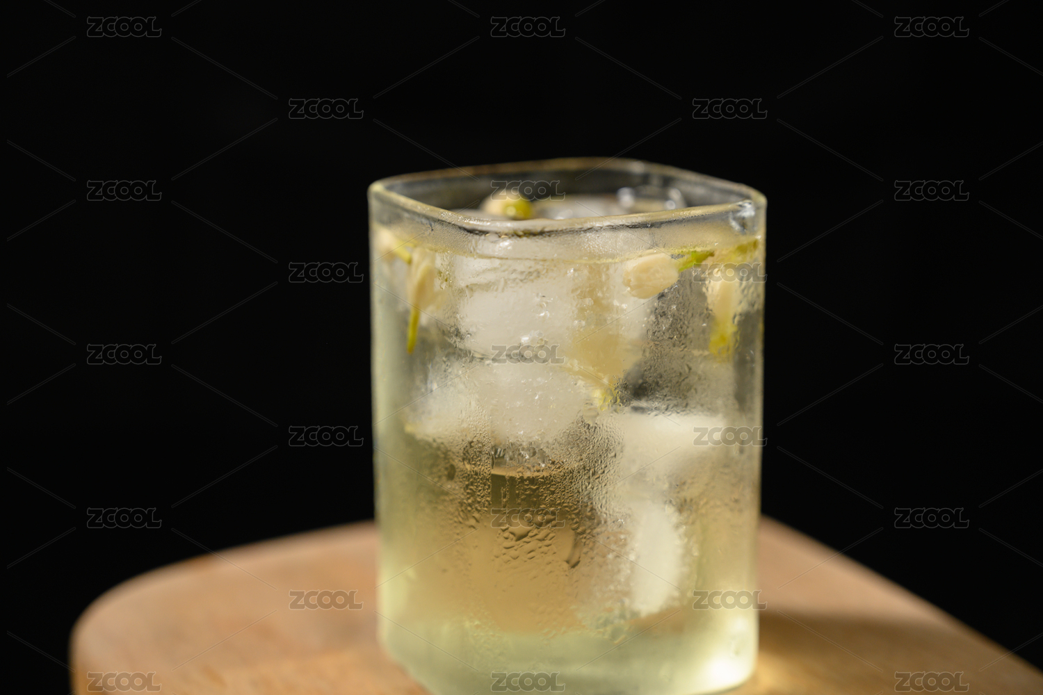 桌面上的杯子里的甘甜可口的冰茉莉花茶