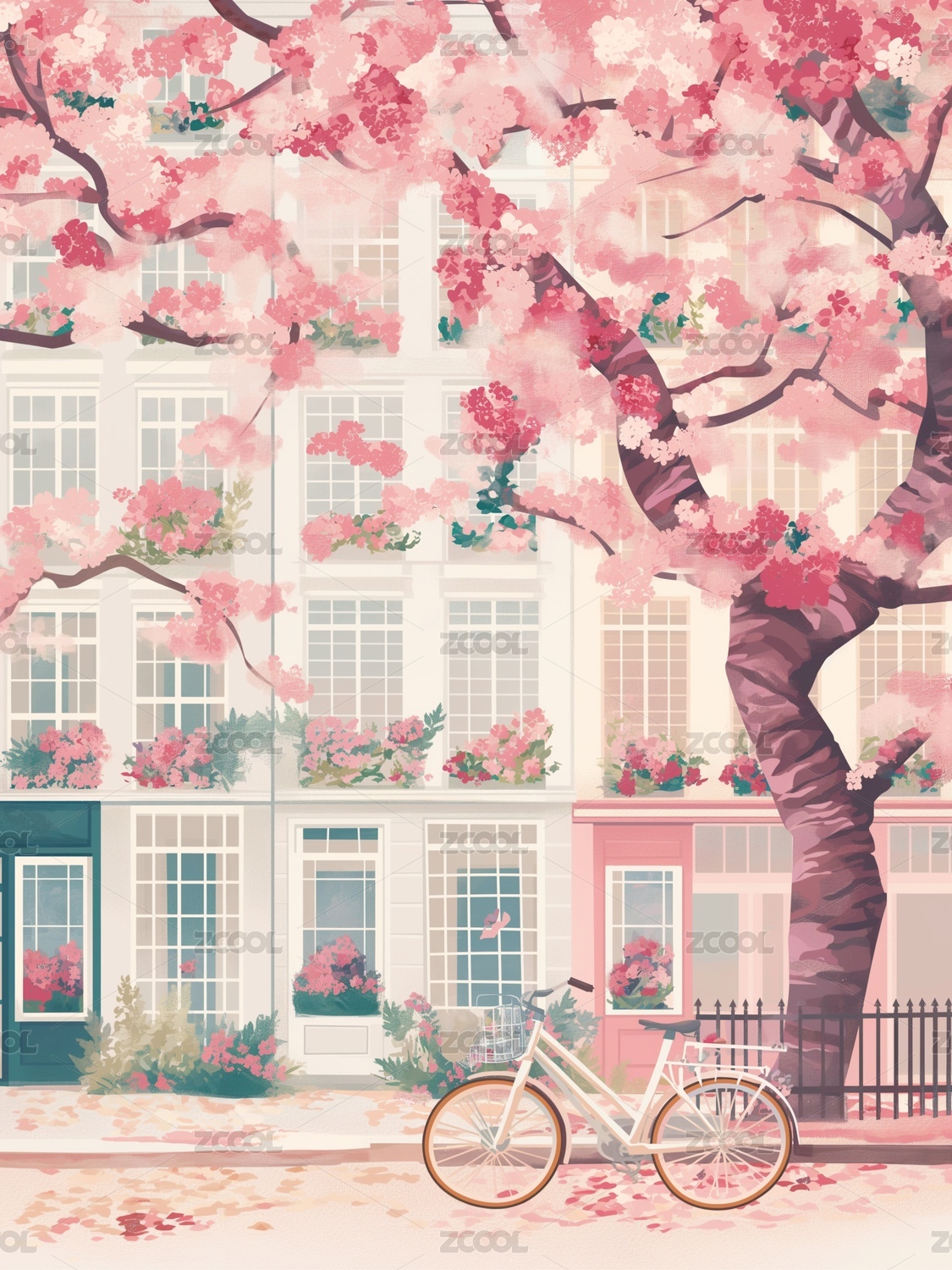 粉色樱花街道的梦幻小巷