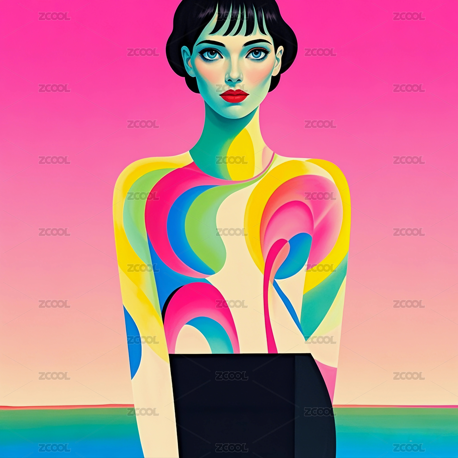 插画风格的时尚美女艺术画