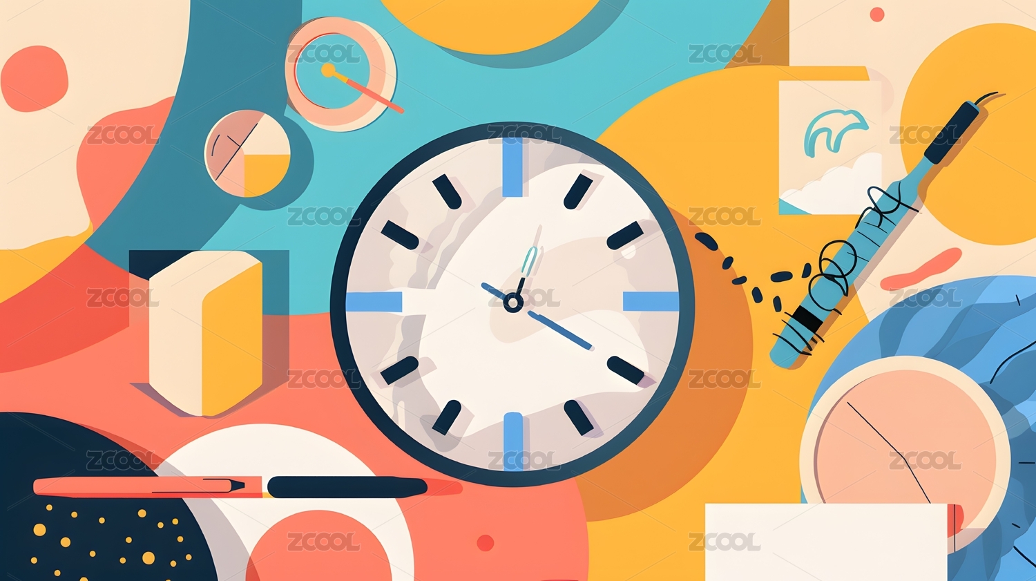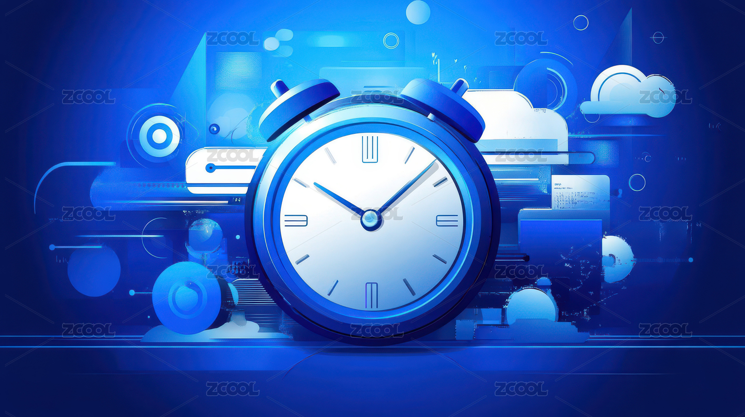 代表时间管理的蓝色钟表商业插图