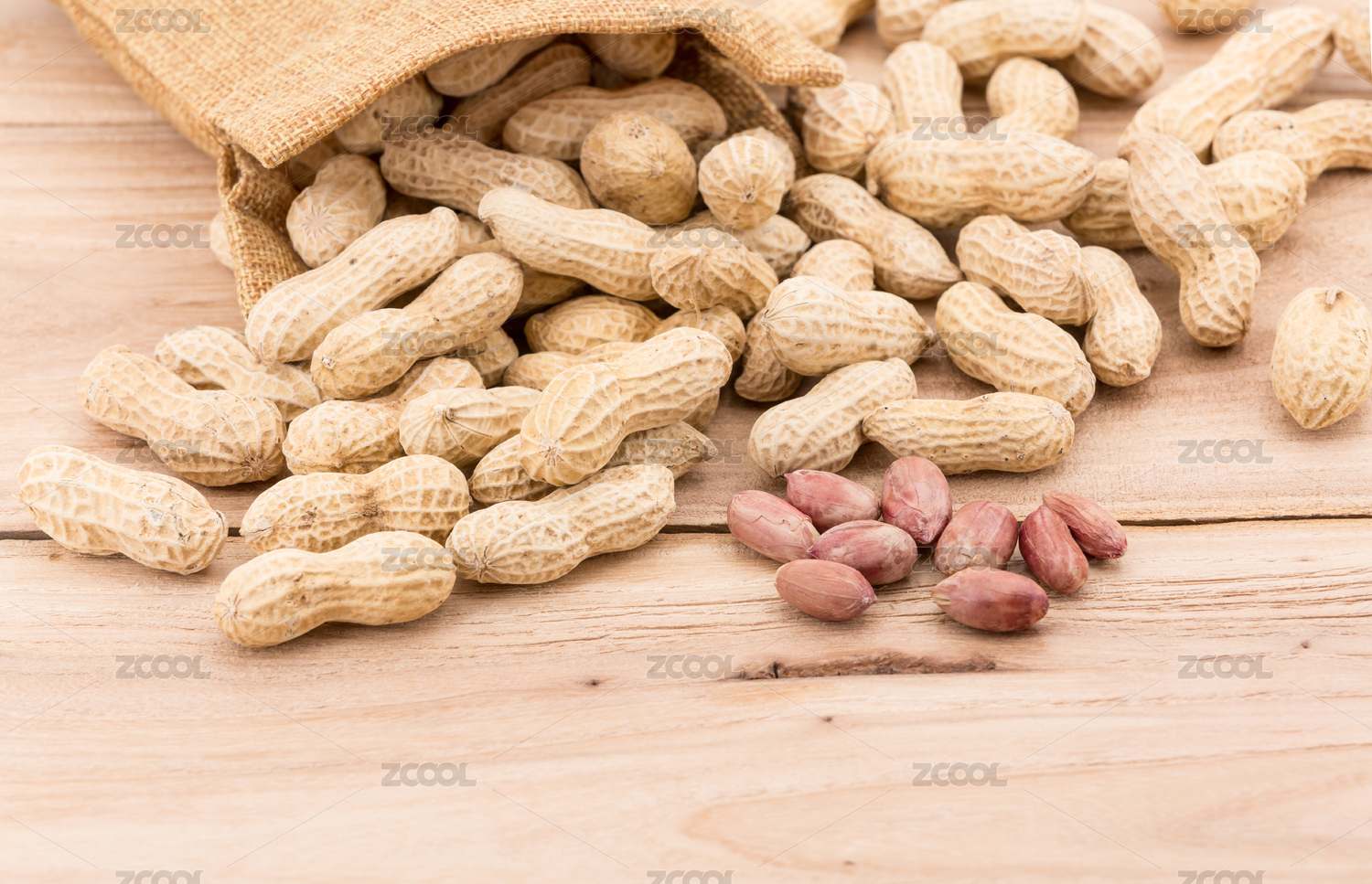 花生在木桌上