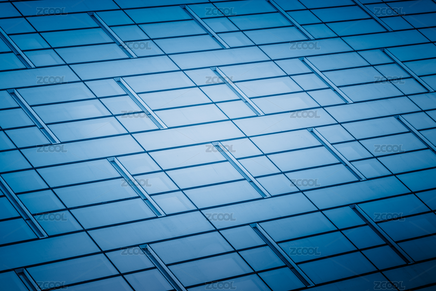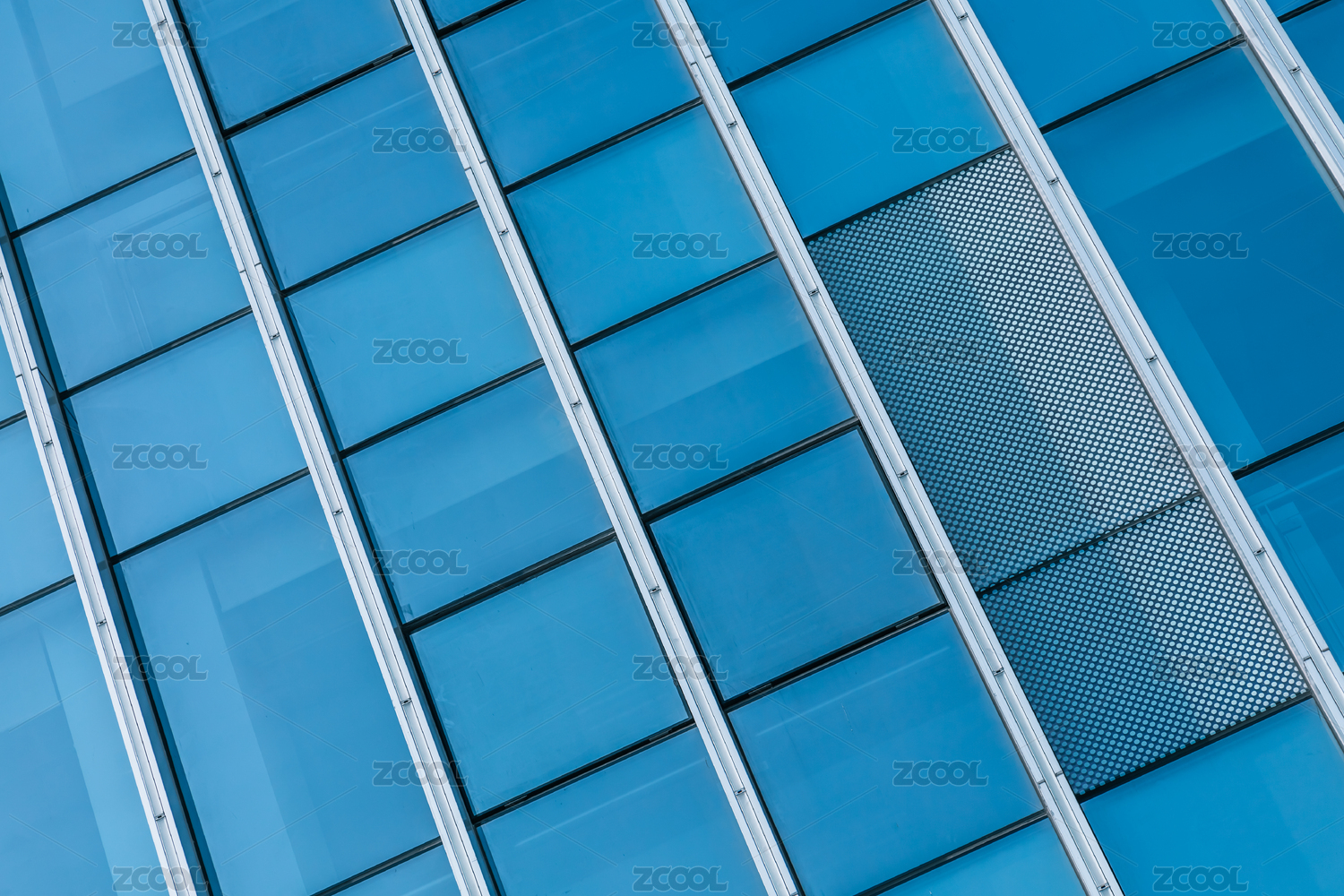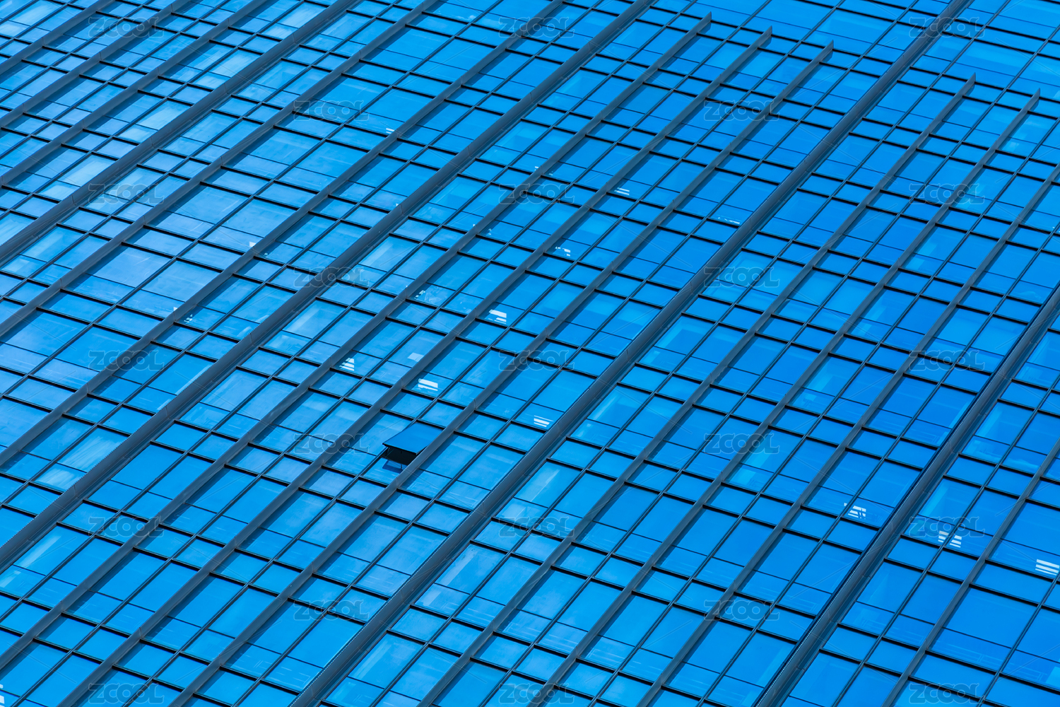 抽象的建筑摩天大楼的蓝色玻璃墙