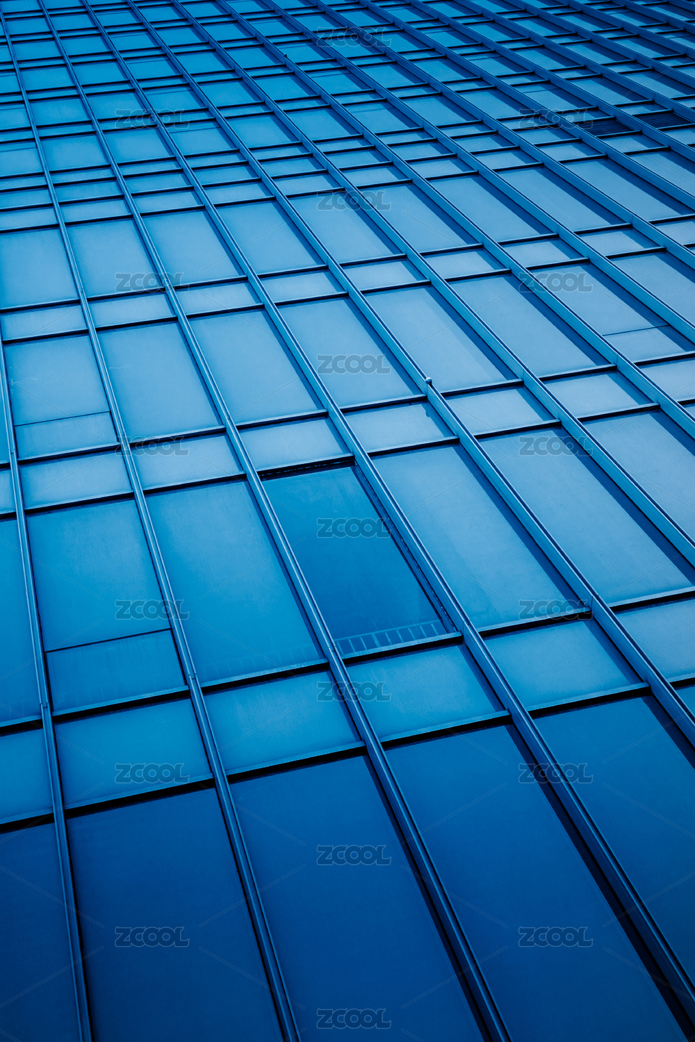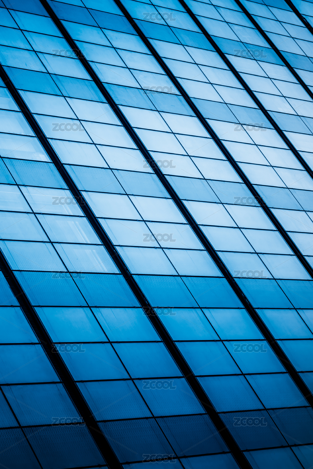 抽象的建筑 摩天大楼的蓝色玻璃墙