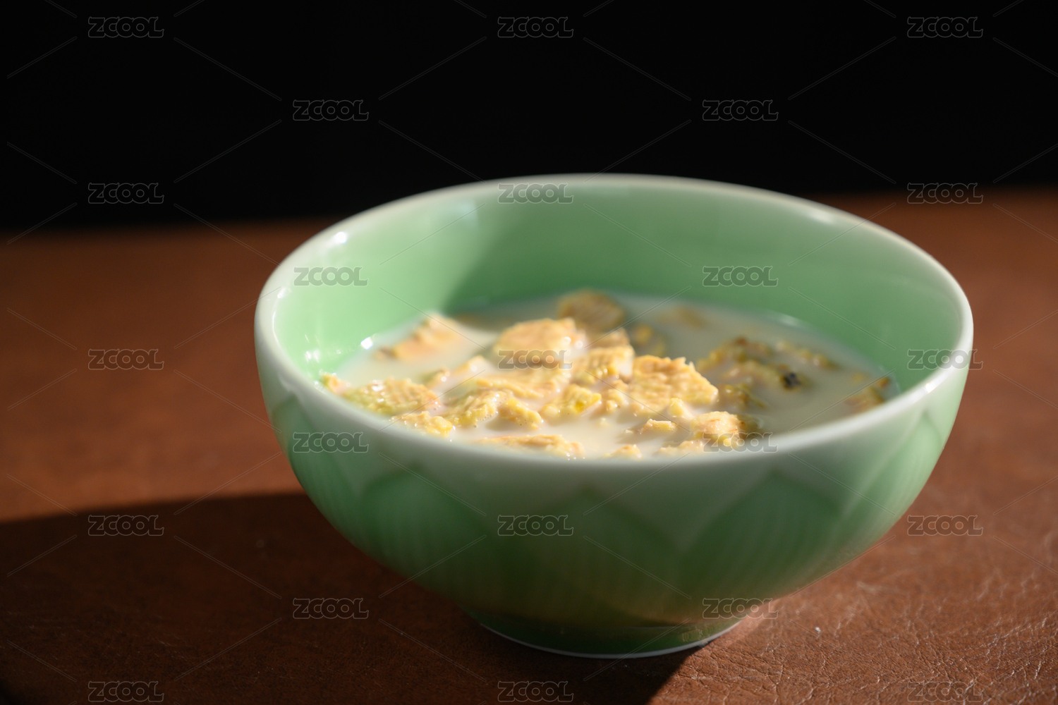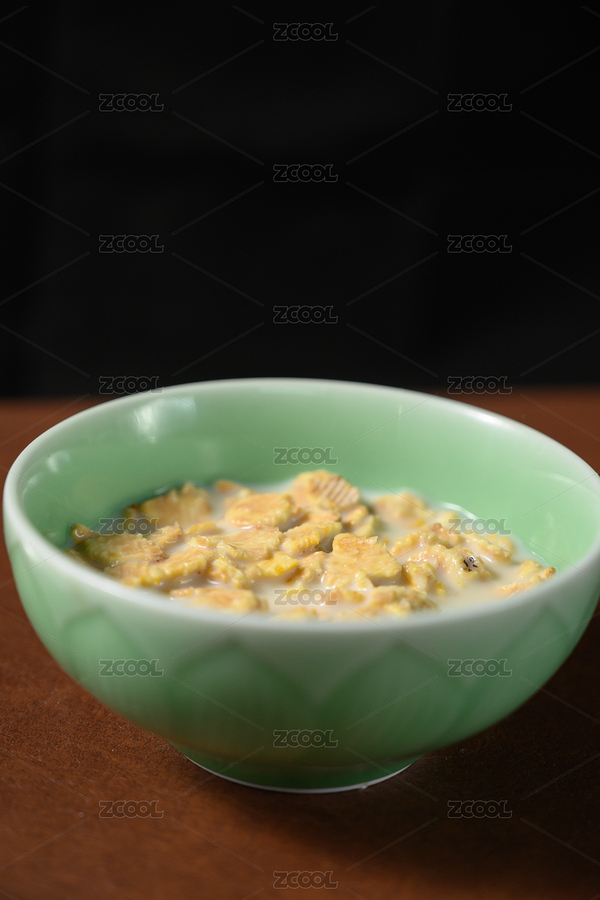 桌面上的碗里的美味可口的牛奶薏米花