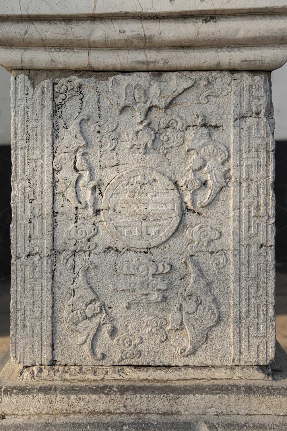 中国山西省运城市解州关帝庙石栏花卉石雕