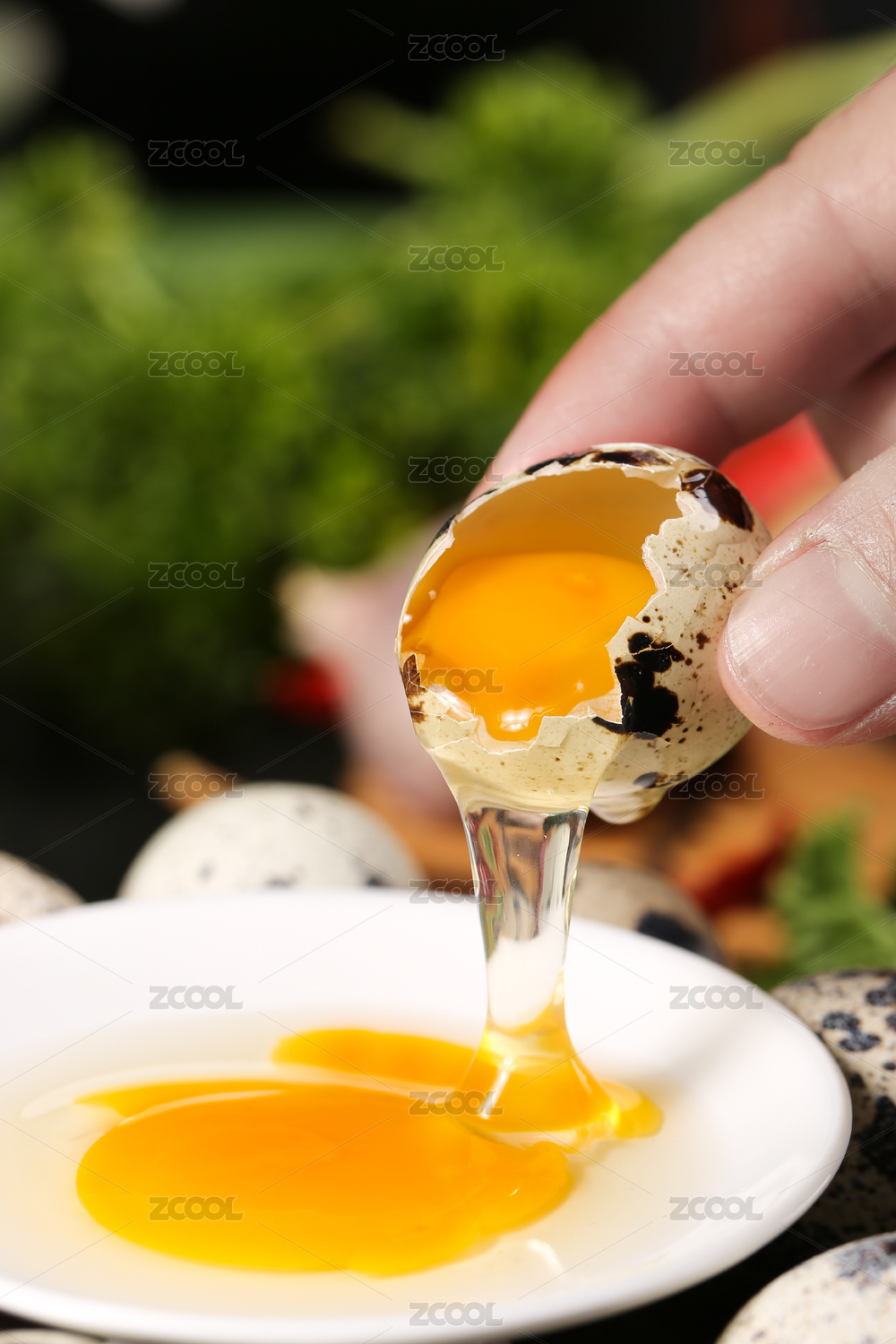 深底上放着一堆鹌鹑蛋和盘子里放着打的鸟蛋