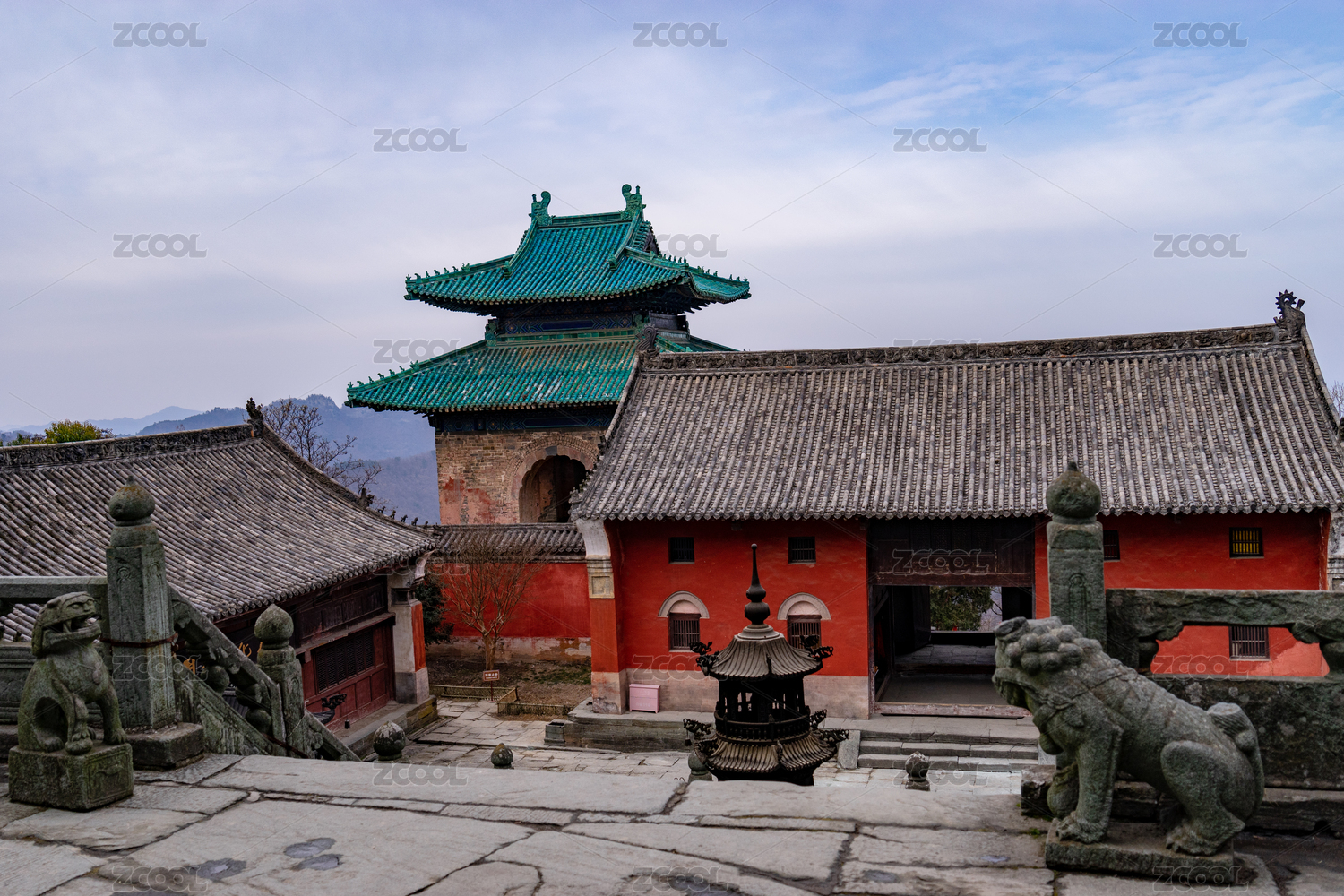 湖北十堰武当山山顶古建筑和自然风光