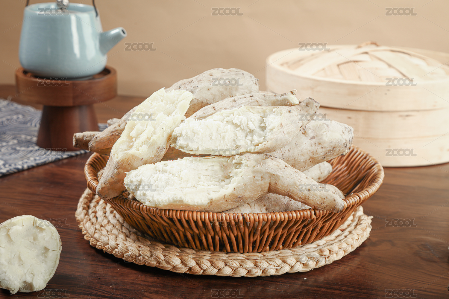 深底上 放着一蓝广西荔浦芋头和半边香芋