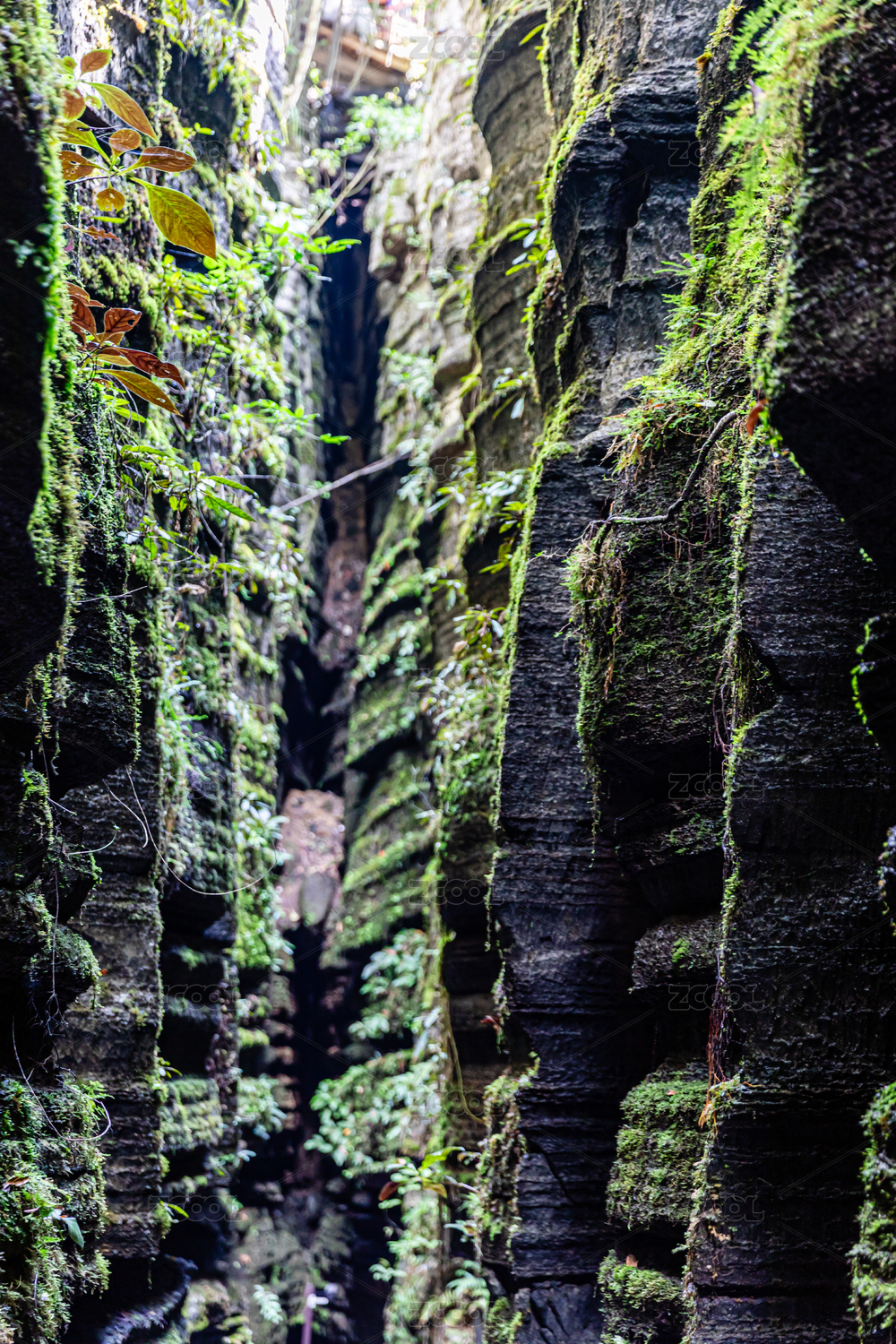 中国湖北恩施的梭布垭石林景区的峡谷石窟风光