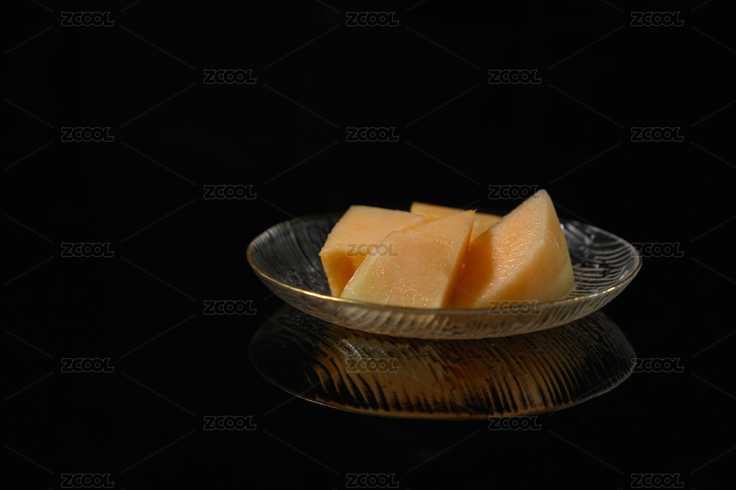 桌面上的盘子里的美味可口的哈密瓜肉