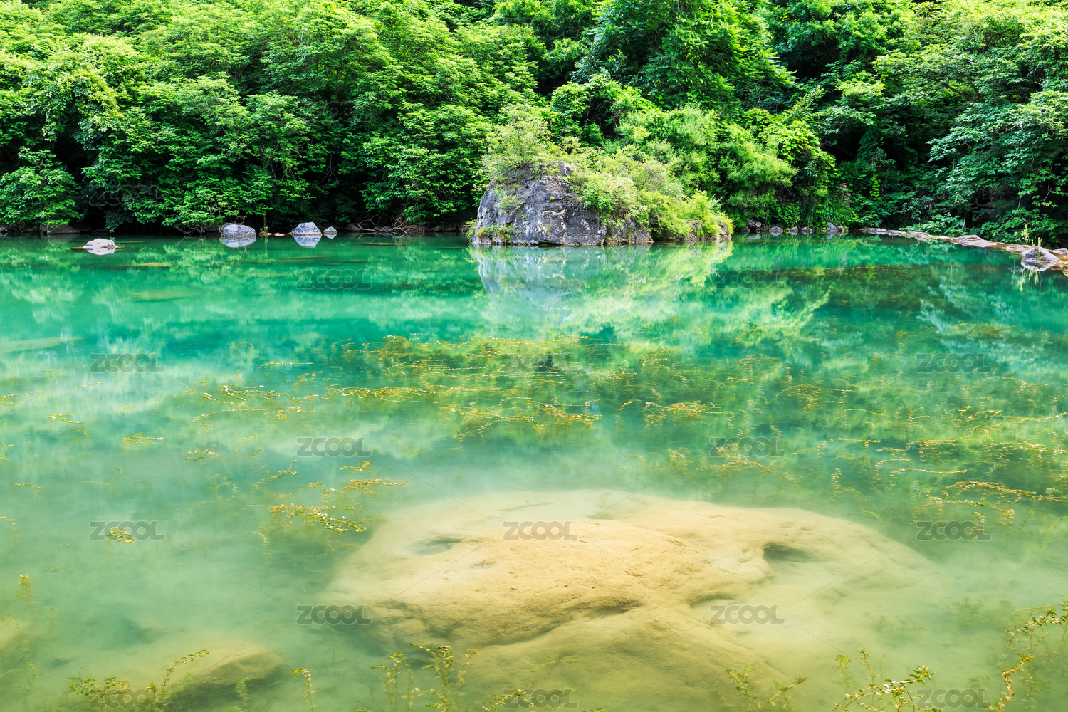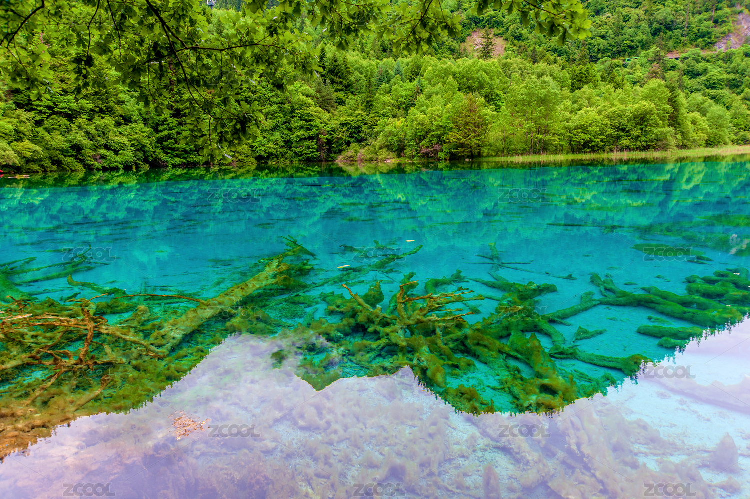 四川阿坝九寨沟五彩池清澈的水