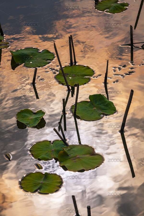 中国,云南,文山,普者黑,仙人洞村,落日,荷叶,湖面,睡眠,浮萍