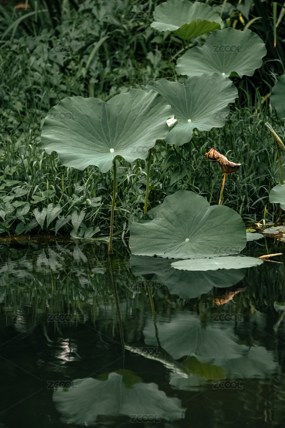 亭亭玉立:池塘中阳光下挺立的荷花莲蓬