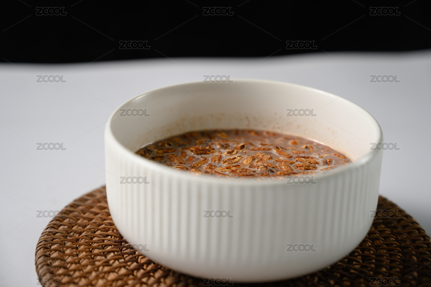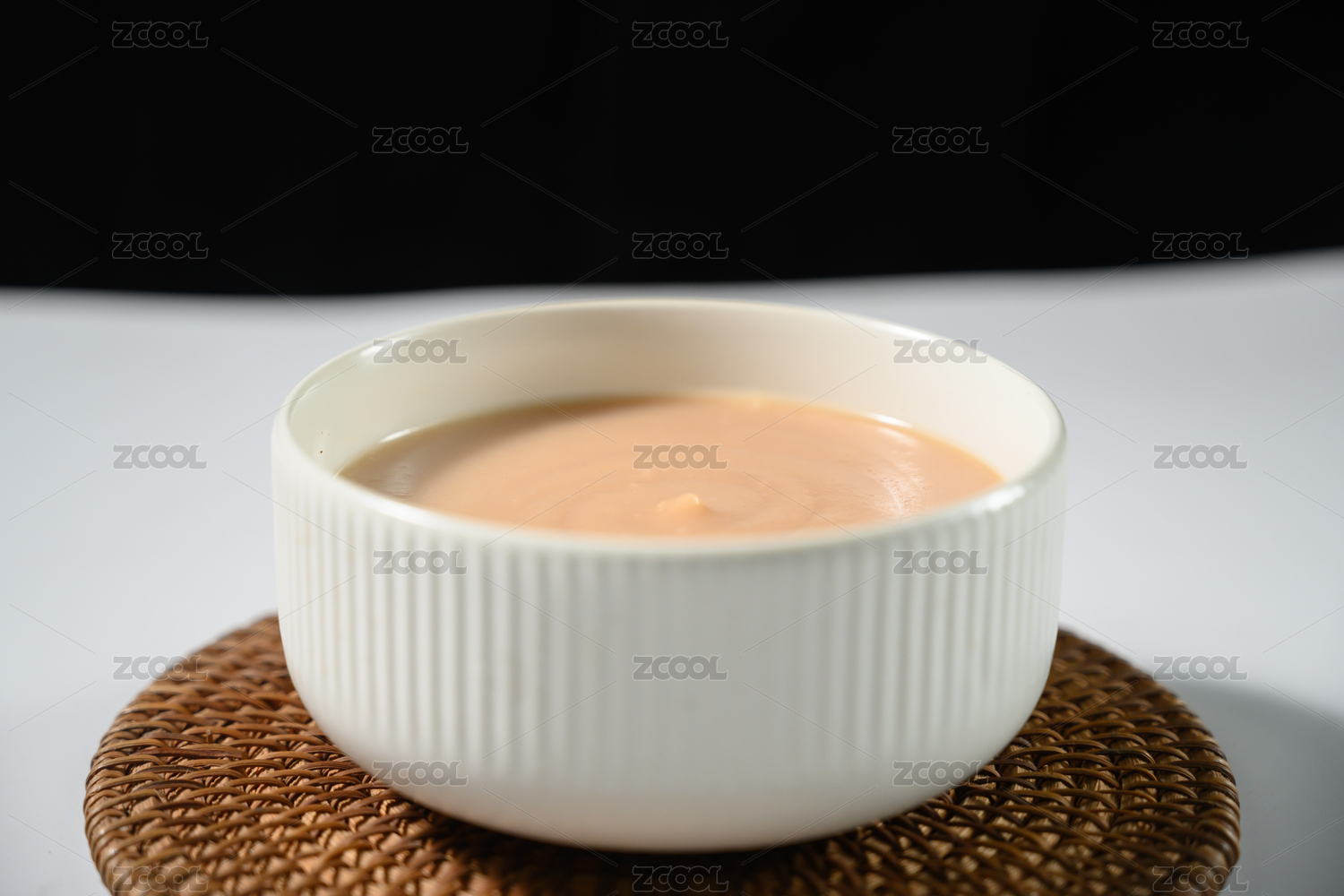 木纹桌上的糖水,清补凉,奶茶,春卷,糕点