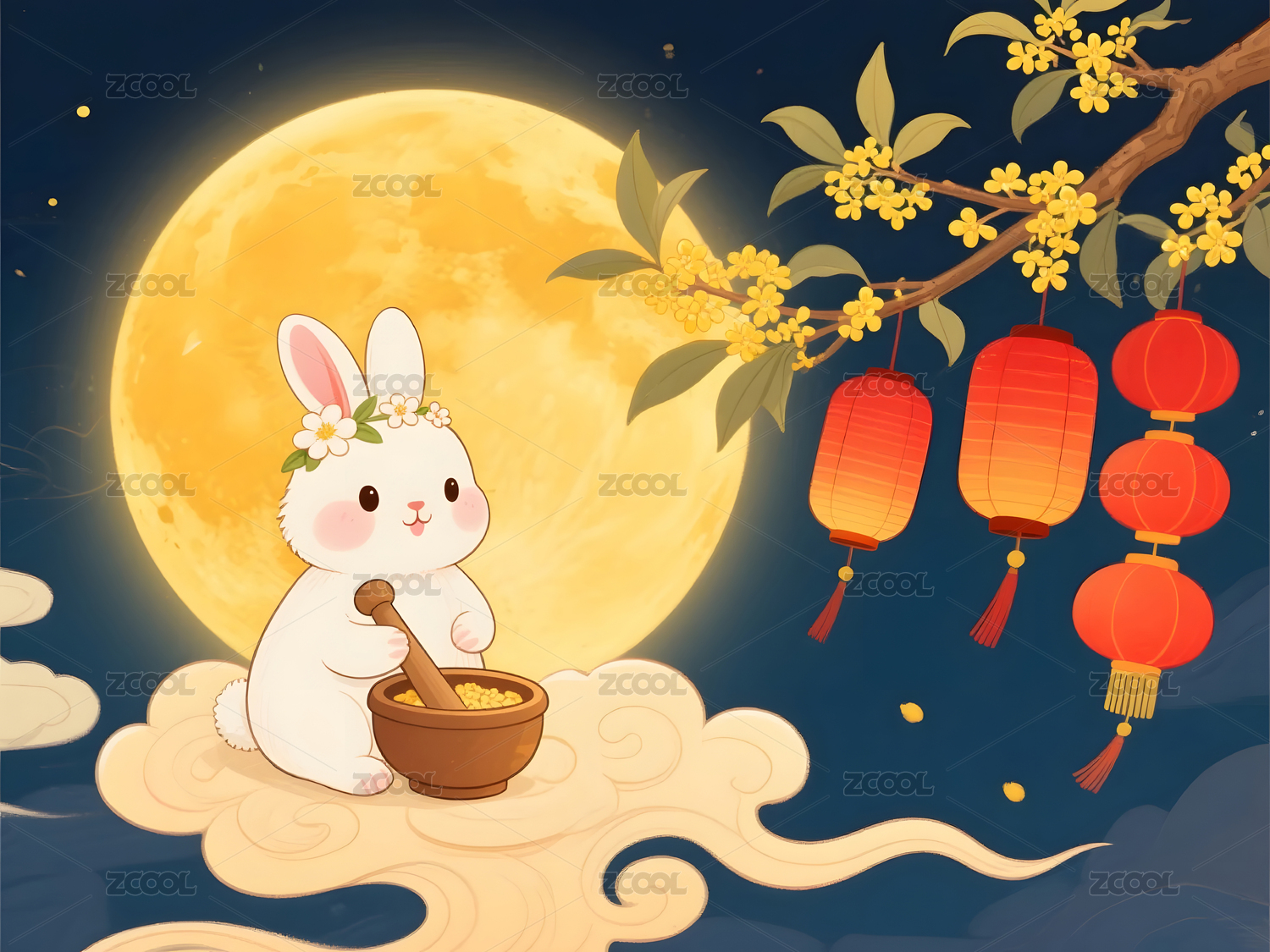 中秋节,玉兔,桂花,灯笼,月饼,月亮
