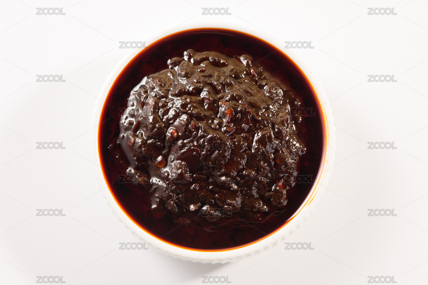 白色背景中一碗岭南传统小吃龟苓膏