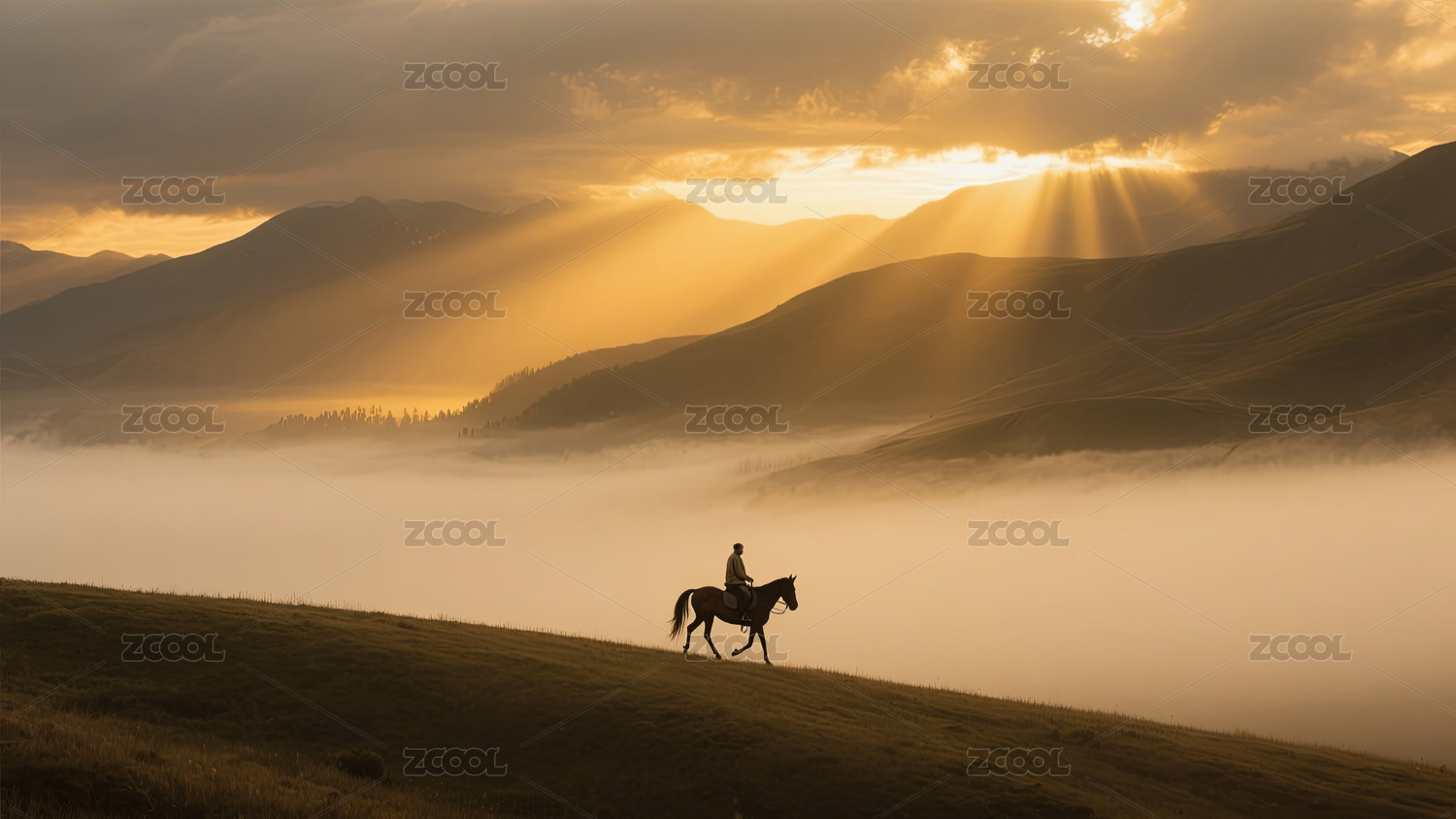山峦夕阳唯美霞光,宁静壮丽氛围
