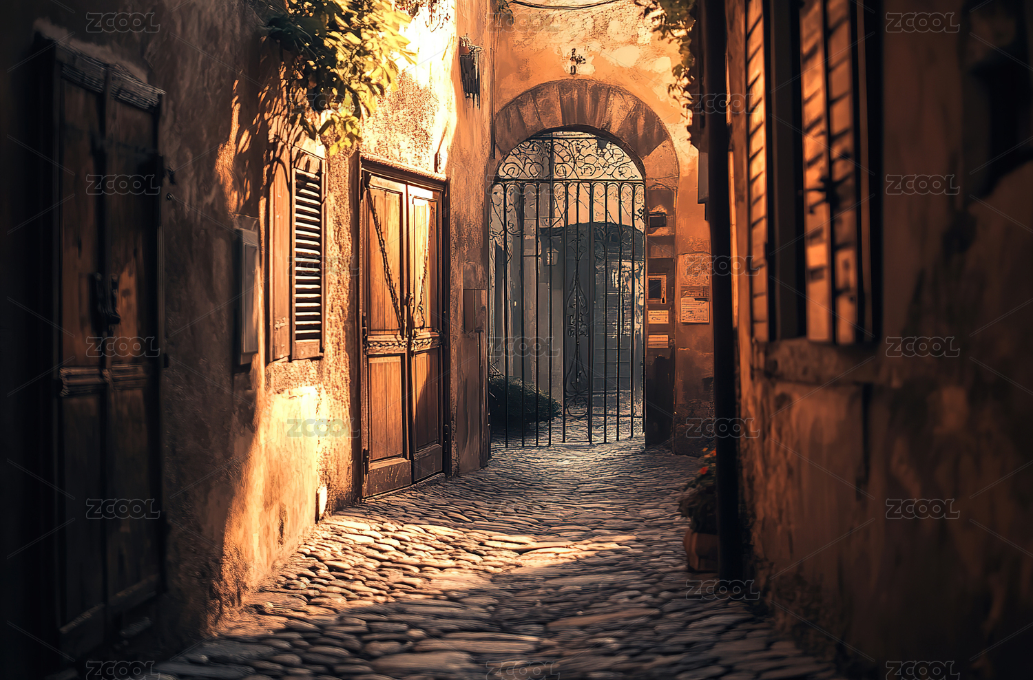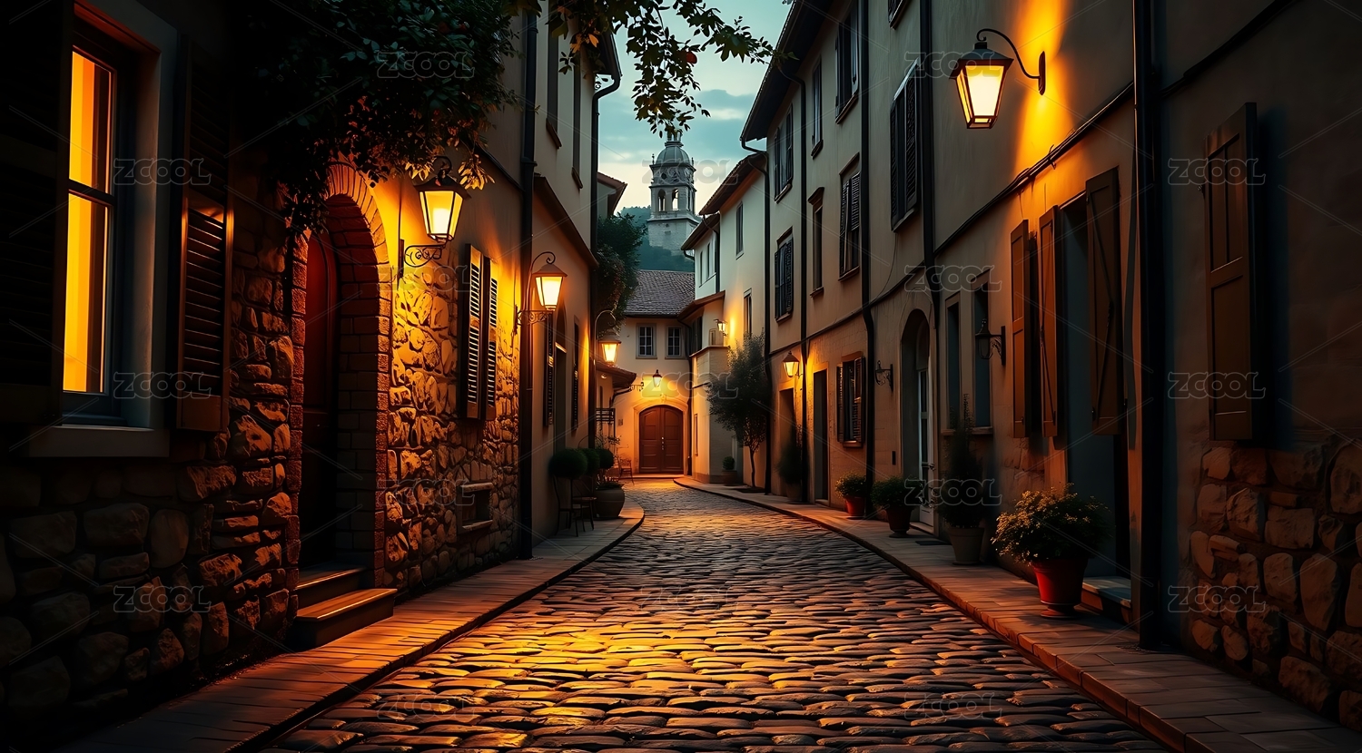 夜色下的石板小巷