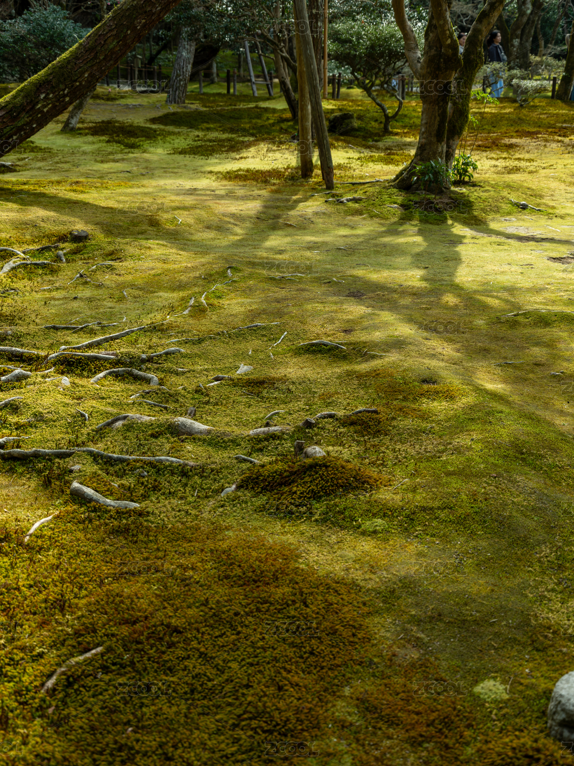 日本京都西芳寺园林景观,花园寺庙与小路,枫叶林里的小路