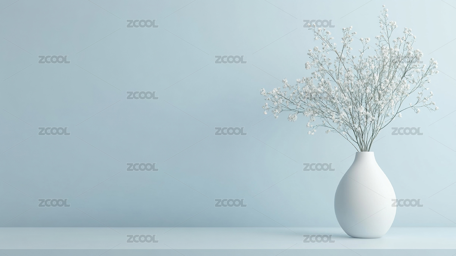 优雅白色花瓶灯光下盛开着娇嫩花朵