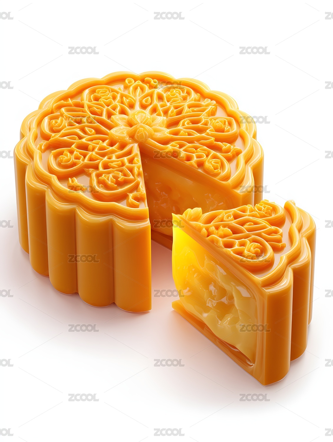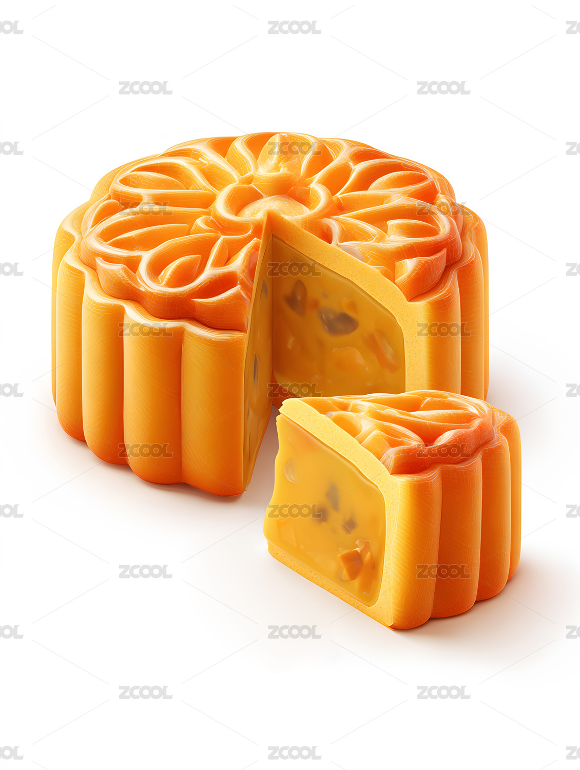 中秋传统花纹月饼切开露馅3D中秋节插画