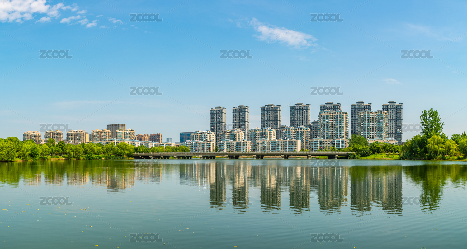 中国四川省成都市锦城湖公园周边的建筑风光